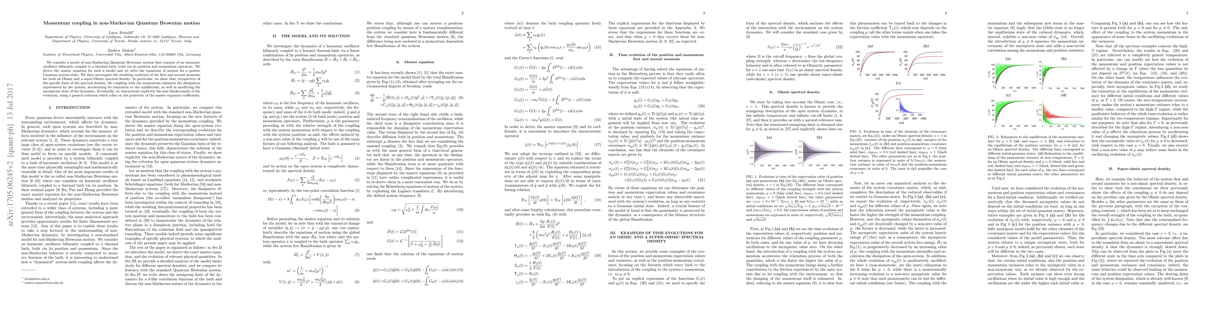 This paper models non-Markovian Quantum Brownian motion with an oscillator coupled to a thermal bath via both position and momentum. It finds that momentum coupling enhances dissipation and accelerates relaxation to equilibrium, regardless of the spectral density, and characterizes the non-Markovianity using a positivity criterion for master equation coefficients.