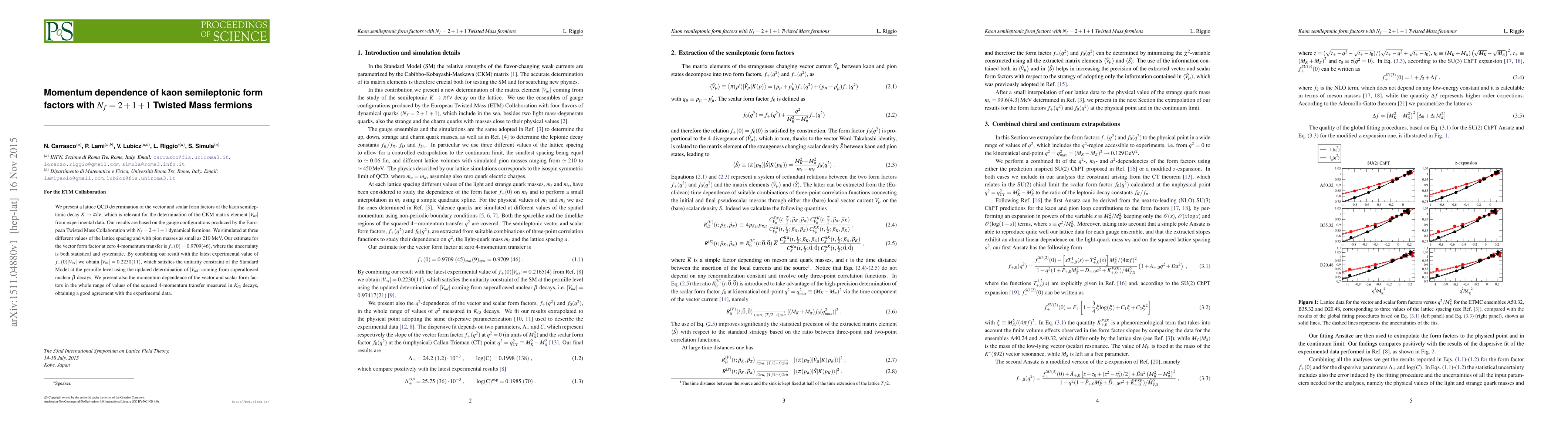 This paper reports a lattice QCD study of kaon semileptonic decay form factors using Nf=2+1+1 twisted mass fermions, yielding $f_+(0) = 0.9709 (46)$ and determining $|V_{us}| = 0.2230 (11)$, consistent with Standard Model unitarity. The study also provides the momentum dependence of these form factors, showing good agreement with experimental data.