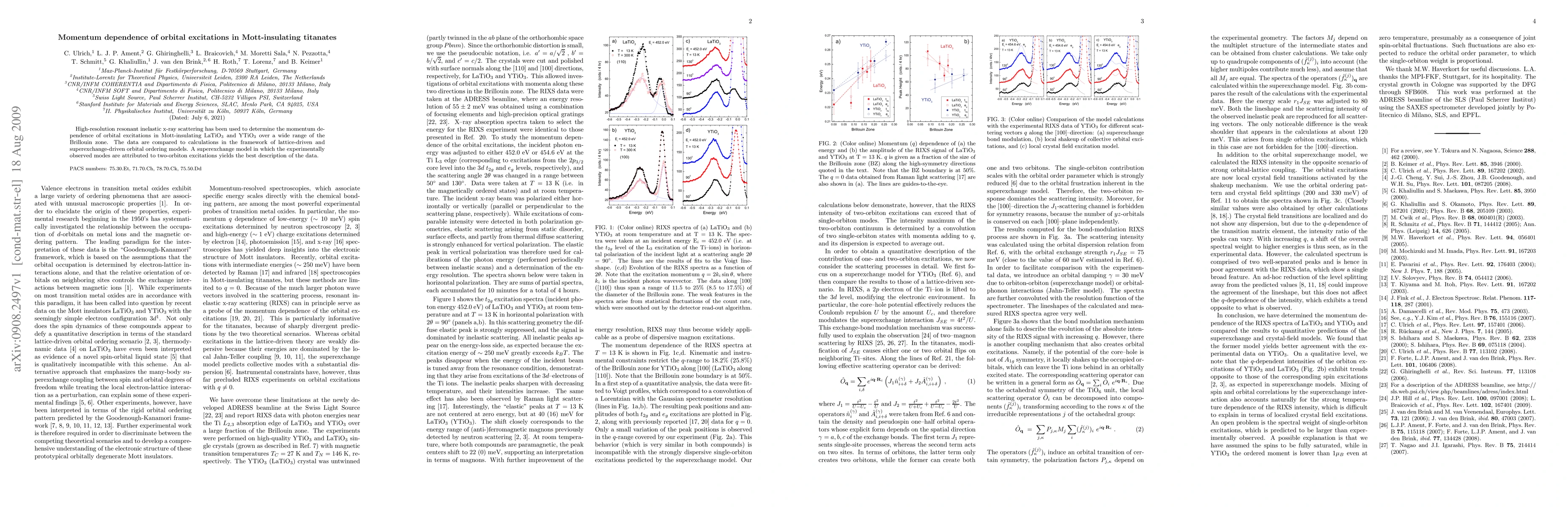 This study uses high-resolution resonant inelastic x-ray scattering to analyze orbital excitations in Mott-insulating titanates LaTiO$_3$ and YTiO$_3$, revealing their momentum dependence across the Brillouin zone. The findings best match a superexchange-driven model attributing observed modes to two-orbiton excitations.