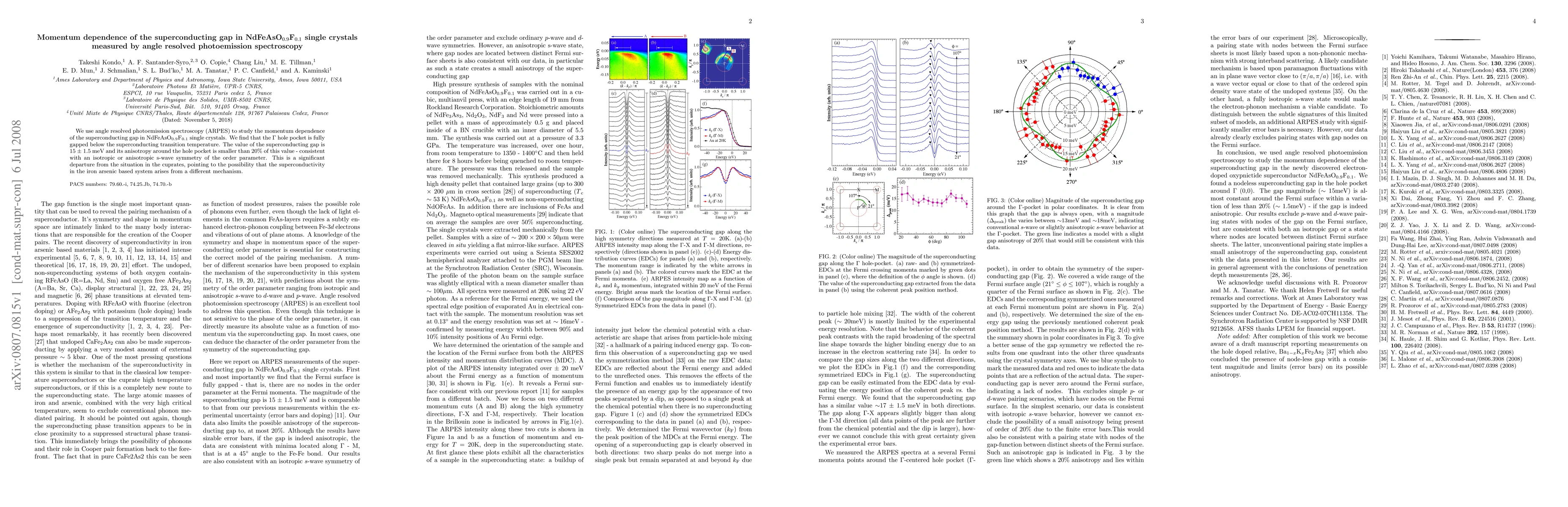 Summary: Using ARPES, we investigate the superconducting gap in NdFeAsO1-xFx single crystals, revealing a fully gapped Gamma hole pocket with a gap value of 15 ± 1.5 meV, suggesting an isotropic or anisotropic s-wave symmetry or exotic d-wave symmetry, differing from cuprates.