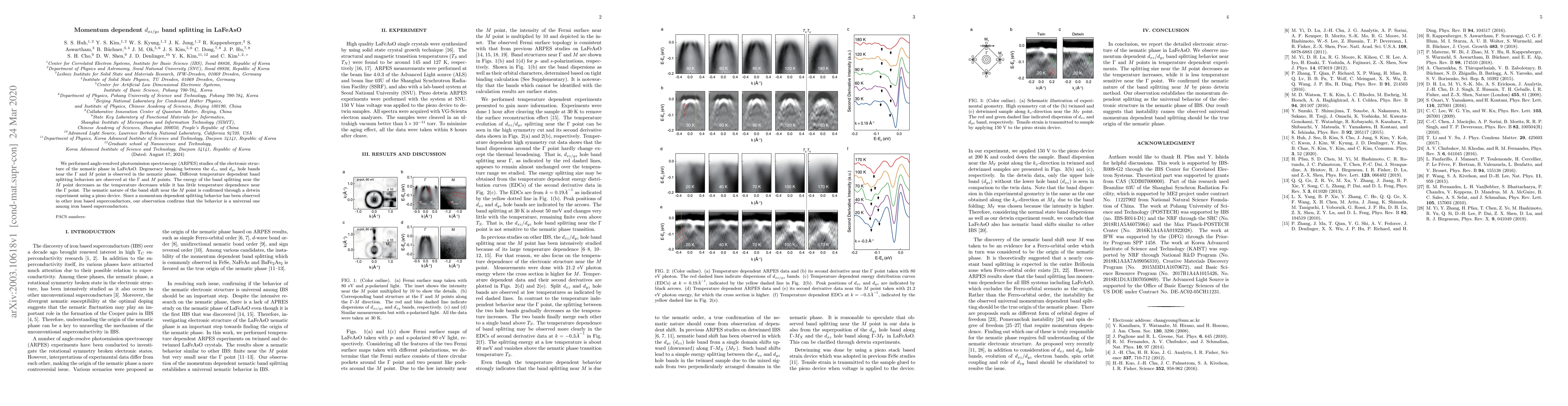 We performed angle-resolved photoemission spectroscopy (ARPES) studies of the electronic structure of the nematic phase in LaFeAsO. Degeneracy breaking between the dxz and dyz hole bands near the {\Gamma} and M point is observed in the nematic phase. Different temperature dependent band splitting behaviors are observed at the {\Gamma} and M points. The energy of the band splitting near the M point decreases as the temperature decreases while it has little temperature dependence near the {\Gamma} point. The nematic nature of the band shift near the M point is confirmed through a detwin experiment using a piezo device. Since a momentum dependent splitting behavior has been observed in other iron based superconductors, our observation confirms that the behavior is a universal one among iron based superconductors.