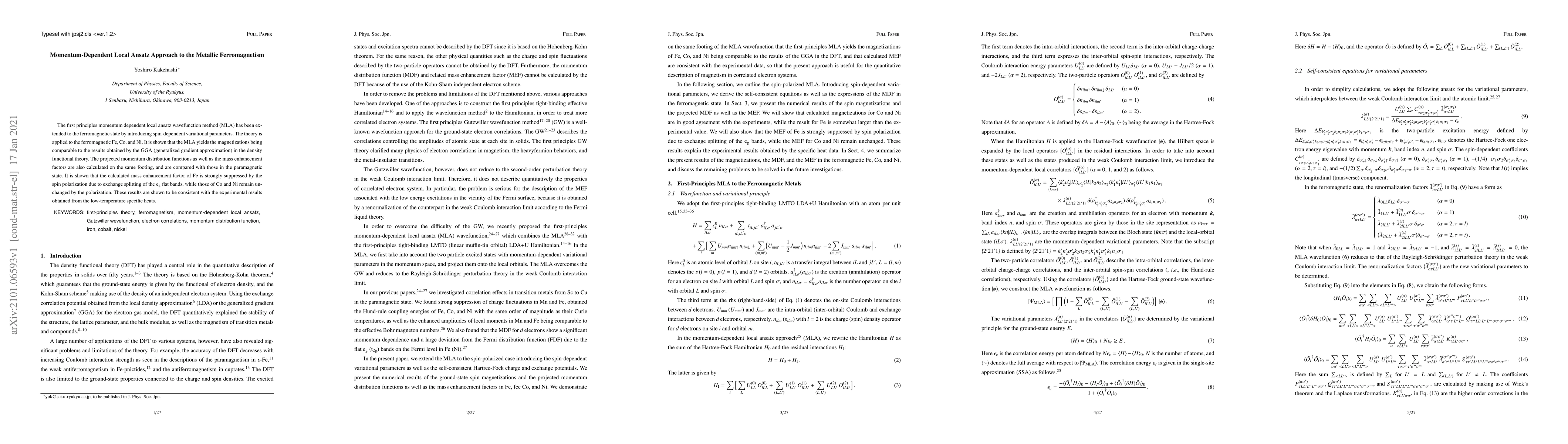 Researchers developed a new approach to calculate metallic ferromagnetism in Fe, Co, and Ni using momentum-dependent local ansatz wavefunction method, which shows comparable results to density functional theory and agrees with experimental data on specific heats.