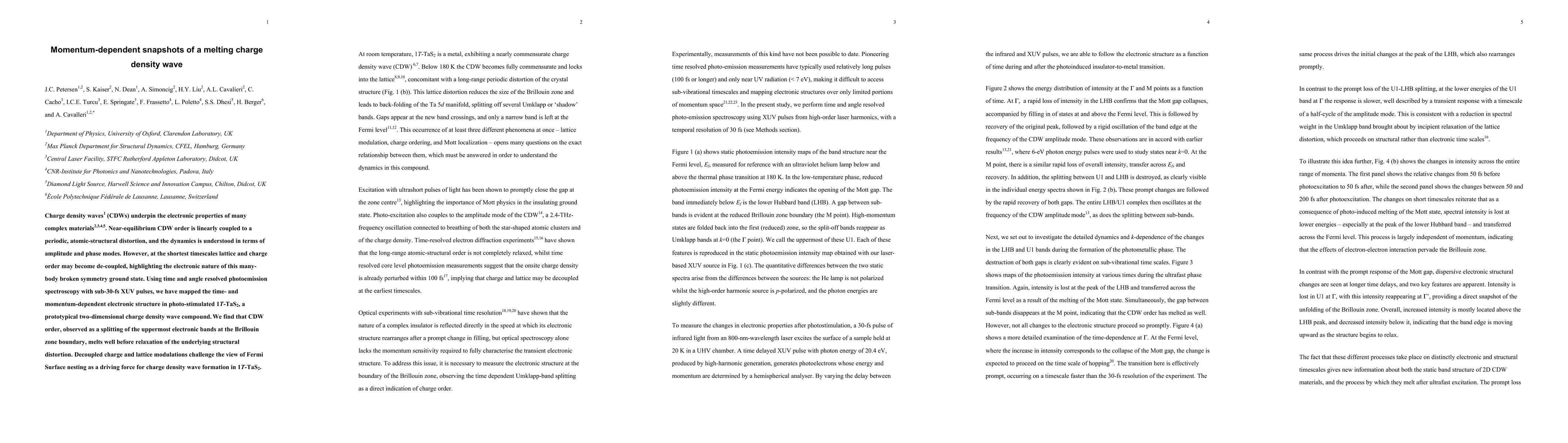 This study uses time-resolved photoemission spectroscopy to observe the dynamics of a melting charge density wave in 1T-TaS2, revealing that the charge order melts before the structural distortion, challenging traditional views on CDW formation. The findings suggest a decoupling of charge and lattice modulations.