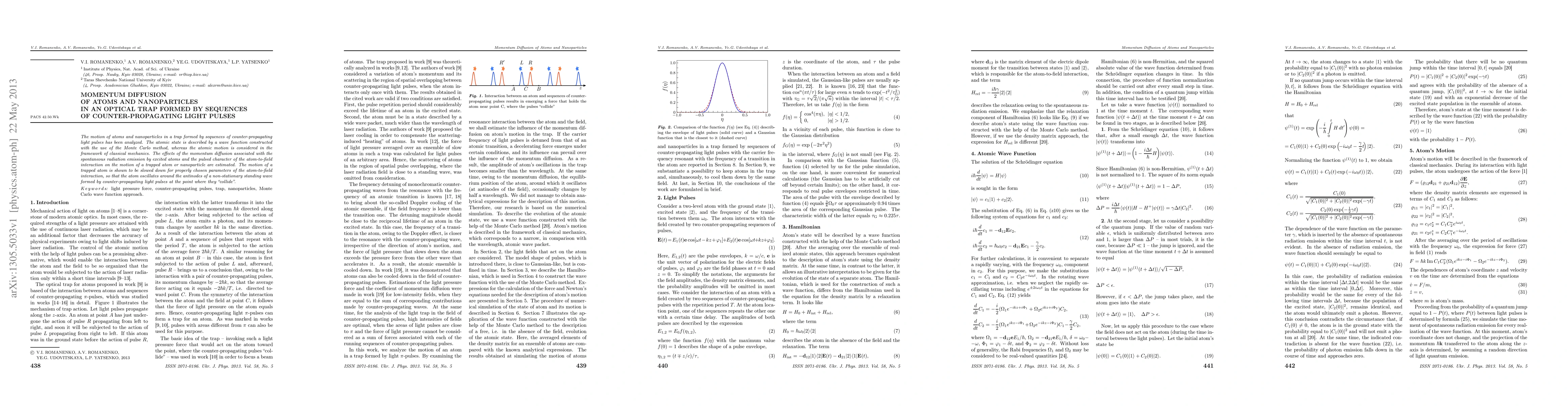 The paper presents a detailed analysis of momentum diffusion in an optical trap formed by sequences of counter-propagating light pulses, combining quantum mechanical wave function construction with classical mechanics for atomic motion description.