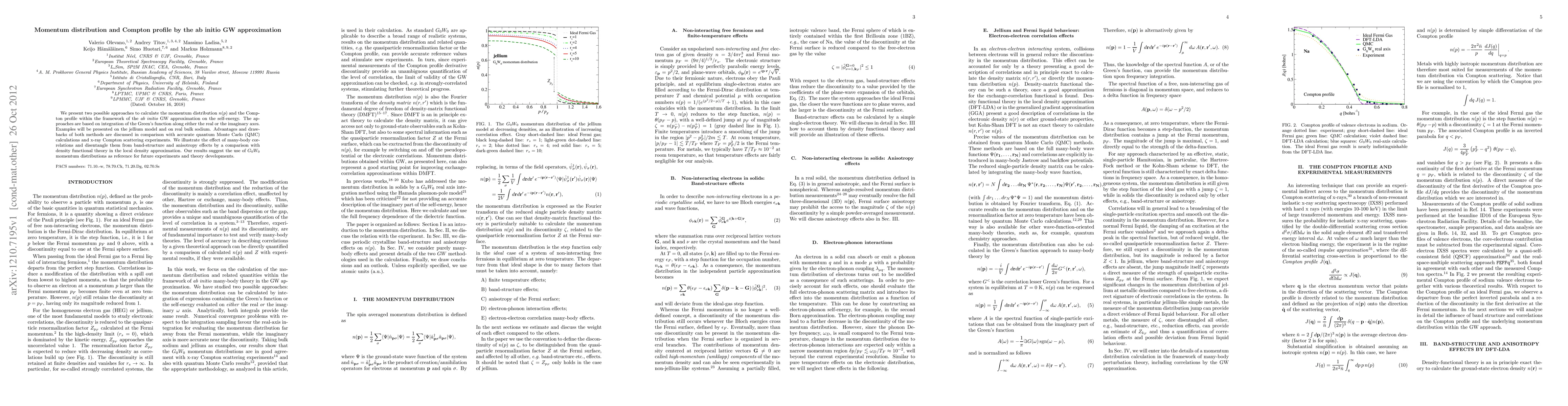We present two possible approaches to calculate the momentum distribution n(p) and the Compton profile within the framework of the ab initio GW approximation on the self-energy. The approaches are based on integration of the Green's function along either the real or the imaginary axes. Examples will be presented on the jellium model and on real bulk sodium. Advantages and drawbacks of both methods are discussed in comparison with accurate quantum Monte Carlo (QMC) calculations and x-ray Compton scattering experiments. We illustrate the effect of many-body correlations and disentangle them from band-structure and anisotropy effects by a comparison with density functional theory in the local density approximation. Our results suggest the use of G0W0 momentum distributions as reference for future experiments and theory developments.