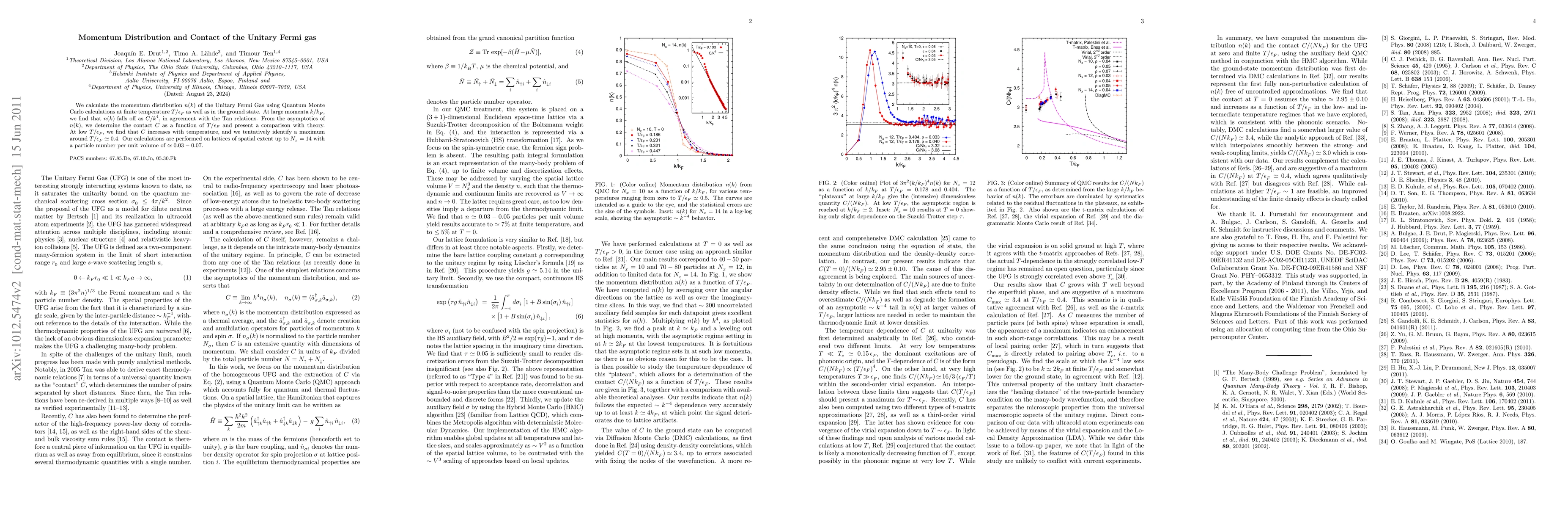 We calculate the momentum distribution n(k) of the Unitary Fermi Gas using Quantum Monte Carlo calculations at finite temperature T/\epsilon_F as well as in the ground state. At large momenta k/k_F, we find that n(k) falls off as C/k^4, in agreement with the Tan relations. From the asymptotics of n(k), we determine the contact C as a function of T/\epsilon_F and present a comparison with theory. At low T/\epsilon_F, we find that C increases with temperature, and we tentatively identify a maximum around T/\epsilon_F \simeq 0.4. Our calculations are performed on lattices of spatial extent up to N_x = 14 with a particle number per unit volume of \simeq 0.03 - 0.07.