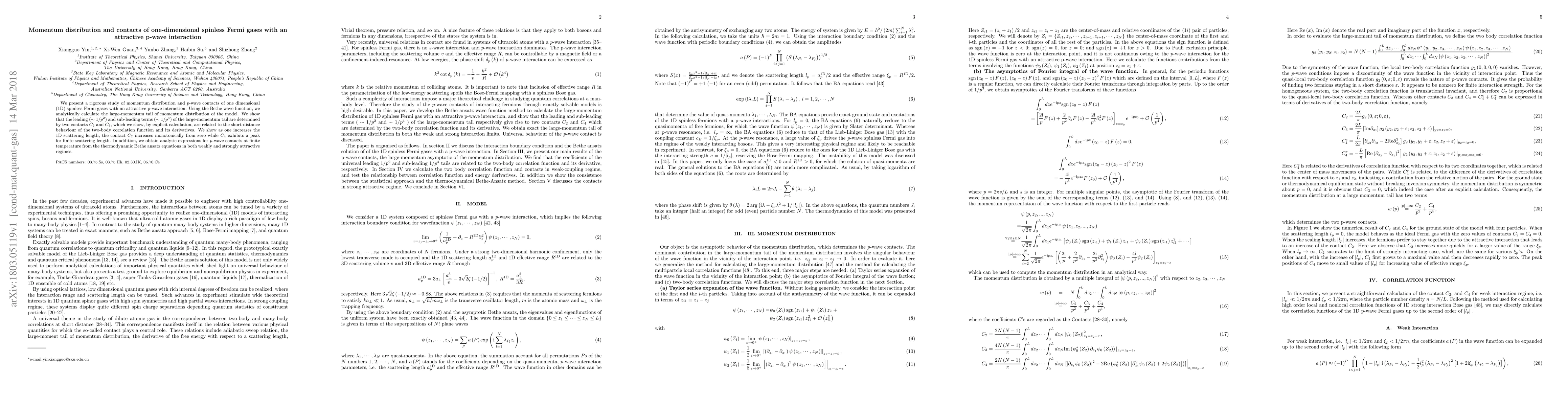 This paper rigorously analyzes the momentum distribution and p-wave contacts in 1D spinless Fermi gases with attractive p-wave interactions, revealing that the large-momentum tail is determined by two contacts $C_2$ and $C_4$, which relate to the two-body correlation function's short-distance behavior. The study shows how these contacts change with the 1D scattering length and provides analytic expressions for p-wave contacts at finite temperature.