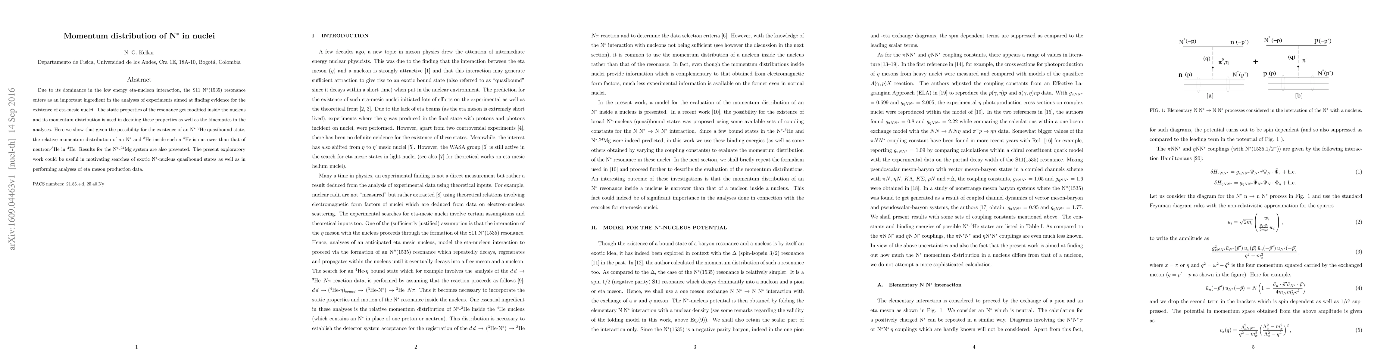 Due to its dominance in the low energy eta-nucleon interaction, the S11 N$^*$(1535) resonance enters as an important ingredient in the analyses of experiments aimed at finding evidence for the existence of eta-mesic nuclei. The static properties of the resonance get modified inside the nucleus and its momentum distribution is used in deciding these properties as well as the kinematics in the analyses. Here we show that given the possibility for the existence of an N$^*$-$^3$He quasibound state, the relative momentum distribution of an N$^*$ and $^3$He inside such a $^4$He is narrower than that of neutron-$^3$He in $^4$He. Results for the N$^*$-$^{24}$Mg system are also presented. The present exploratory work could be useful in motivating searches of exotic N$^*$-nucleus quasibound states as well as in performing analyses of eta meson production data.