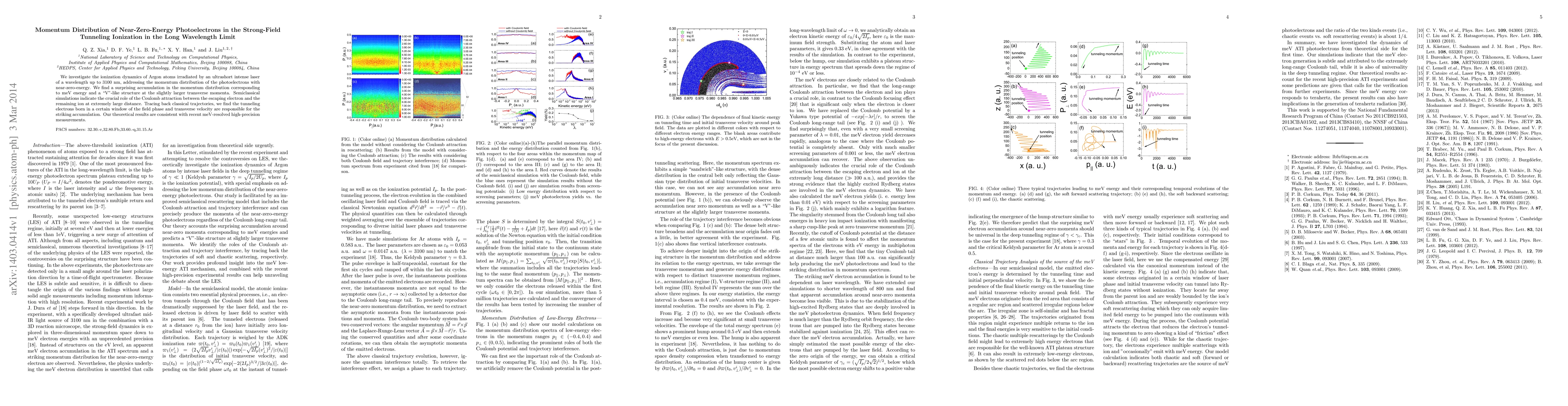 We investigate the ionization dynamics of Argon atoms irradiated by an ultrashort intense laser of a wavelength up to 3100 nm, addressing the momentum distribution of the photoelectrons with near-zero-energy. We find a surprising accumulation in the momentum distribution corresponding to meV energy and a \textquotedblleft V"-like structure at the slightly larger transverse momenta. Semiclassical simulations indicate the crucial role of the Coulomb attraction between the escaping electron and the remaining ion at extremely large distance. Tracing back classical trajectories, we find the tunneling electrons born in a certain window of the field phase and transverse velocity are responsible for the striking accumulation. Our theoretical results are consistent with recent meV-resolved high-precision measurements.