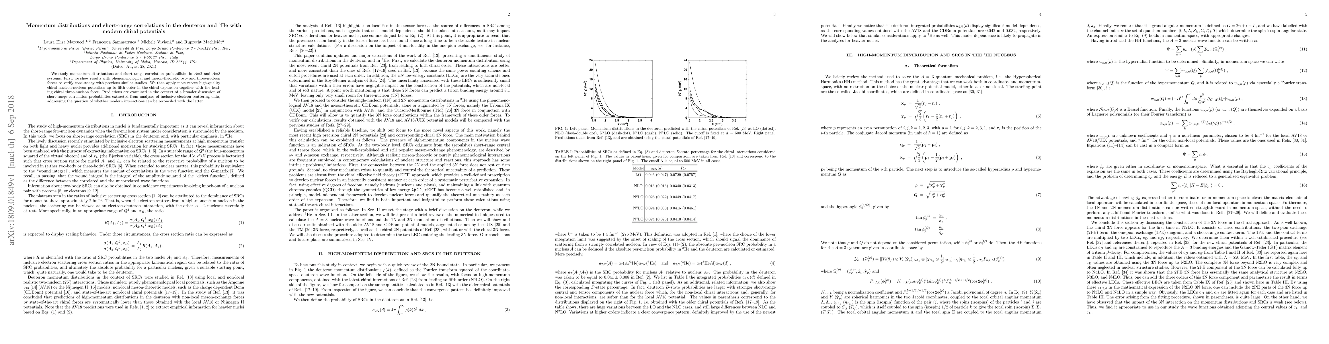 This paper investigates momentum distributions and short-range correlations in deuterons and $^3$He using modern chiral nucleon-nucleon potentials, comparing results from phenomenological and meson-theoretic forces to previous studies. It assesses whether recent high-quality chiral interactions align with short-range correlation probabilities derived from electron scattering data.