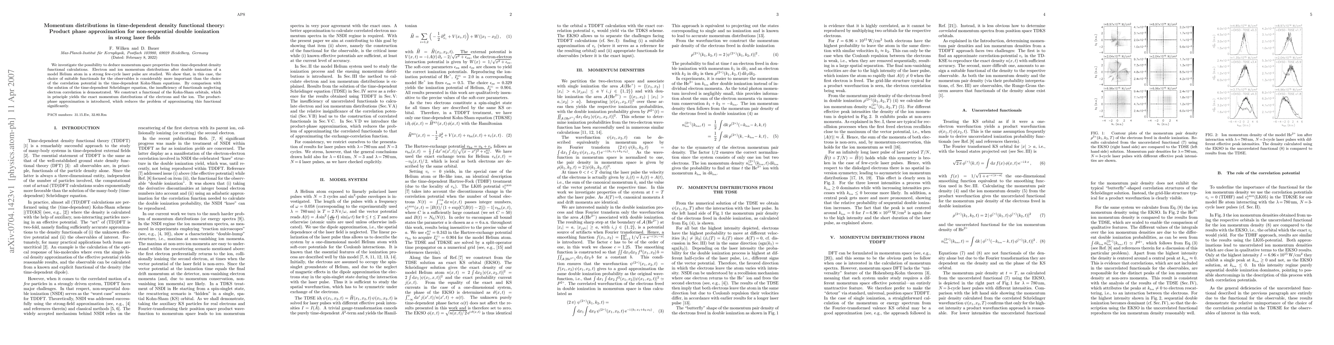 We investigate the possibility to deduce momentum space properties from time-dependent density functional calculations. Electron and ion momentum distributions after double ionization of a model Helium atom in a strong few-cycle laser pulse are studied. We show that, in this case, the choice of suitable functionals for the observables is considerably more important than the choice of the correlation potential in the time-dependent Kohn-Sham equations. By comparison with the solution of the time-dependent Schroedinger equation, the insufficiency of functionals neglecting electron correlation is demonstrated. We construct a functional of the Kohn-Sham orbitals, which in principle yields the exact momentum distributions of the electrons and the ion. The product-phase approximation is introduced, which reduces the problem of approximating this functional significantly.