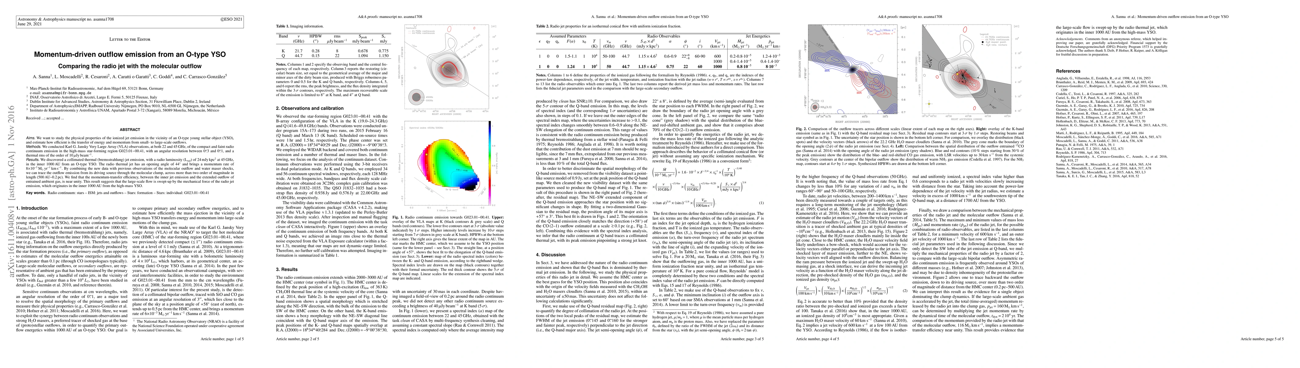 Researchers studied an O-type young stellar object's radio jet emission and found that it efficiently transfers energy and momentum to a large-scale outflow, suggesting the outflow is driven by the mechanical force of the jet.