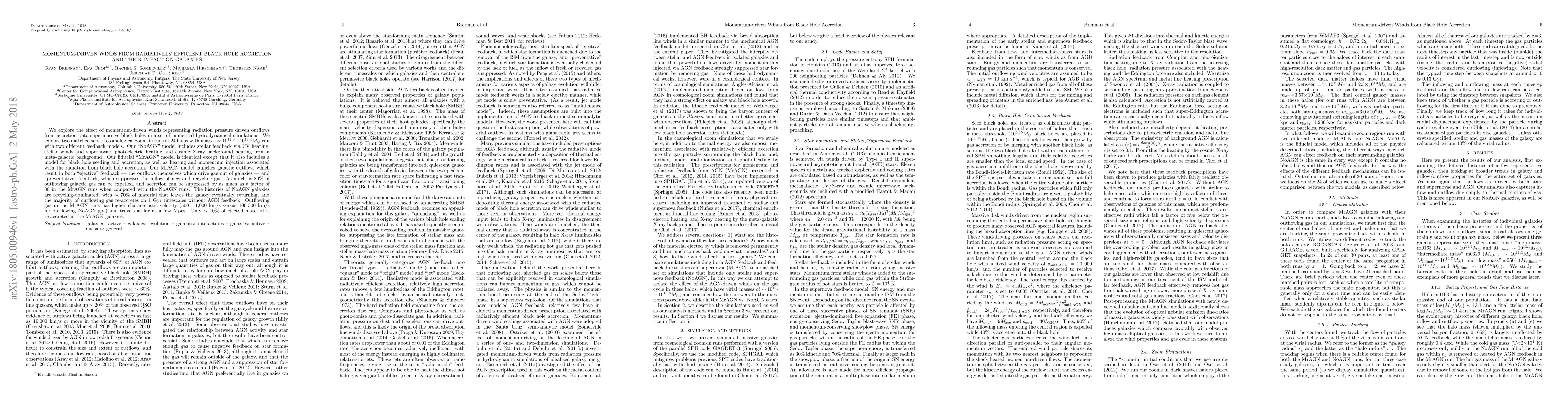 We explore the effect of momentum-driven winds representing radiation pressure driven outflows from accretion onto supermassive black holes in a set of numerical hydrodynamical simulations. We explore two matched sets of cosmological zoom-in runs of 24 halos with masses ~$10^{12.0}-10^{13.4}$ M_sun run with two different feedback models. Our `NoAGN' model includes stellar feedback via UV heating, stellar winds and supernovae, photoelectric heating and cosmic X-ray background heating from a meta-galactic background. Our fiducial `MrAGN' model is identical except that it also includes a model for black hole seeding and accretion, as well as heating and momentum injection associated with the radiation from black hole accretion. Our MrAGN model launches galactic outflows which result in both `ejective' feedback - the outflows themselves which drive gas out of galaxies - and `preventative' feedback, which suppresses the inflow of new and recycling gas. As much as 80 % of outflowing galactic gas can be expelled, and accretion can be suppressed by as much as a factor of 30 in the MrAGN runs when compared with the NoAGN runs. The histories of NoAGN galaxies are recycling-dominated, with ~70% of material that leaves the galaxy eventually returning, and the majority of outflowing gas re-accretes on 1 Gyr timescales without AGN feedback. Outflowing gas in the MrAGN runs has higher characteristic velocity (500 - 1,000 km/s versus 100-300 km/s for outflowing NoAGN gas) and travels as far as a few Mpcs. Only ~10% of ejected material is re-accreted in the MrAGN galaxies.