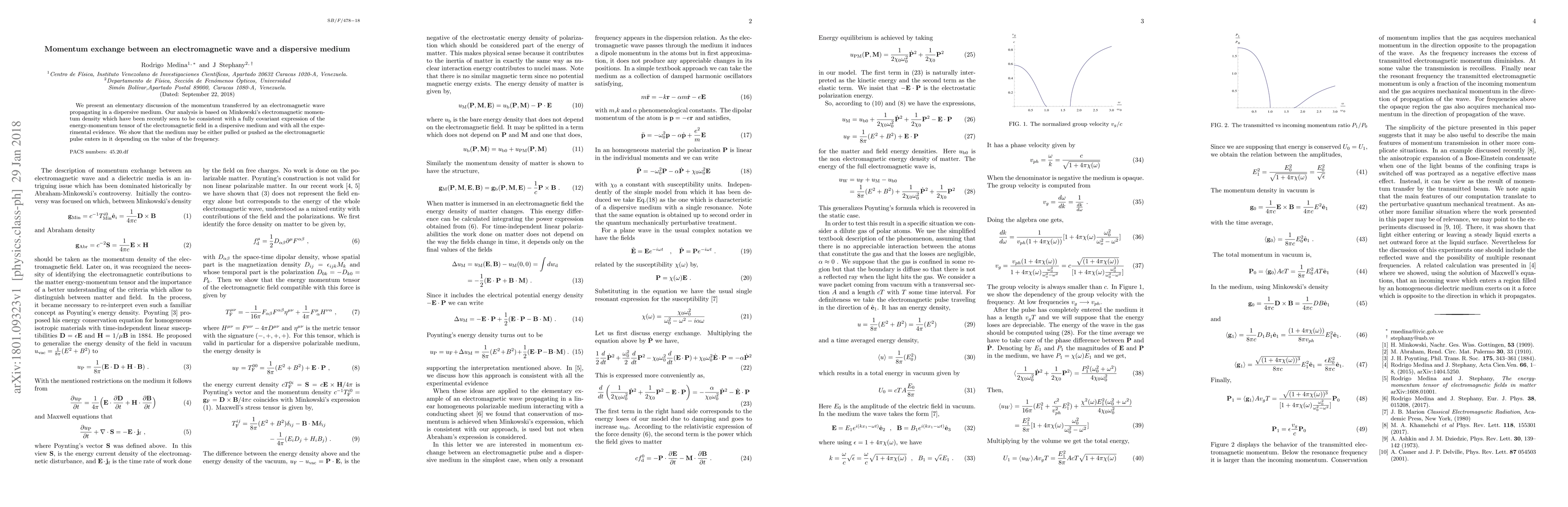 This paper explores the momentum exchange between an electromagnetic wave and a dispersive medium, demonstrating that the medium can be either pulled or pushed based on the frequency of the wave, using Minkowski's electromagnetic momentum density as a consistent framework.