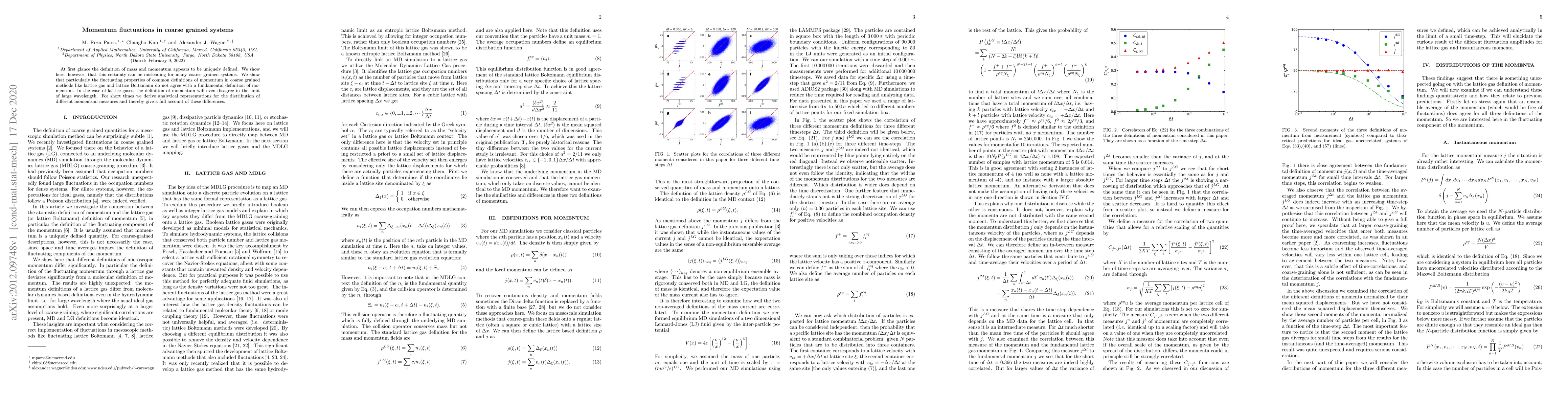 This research paper finds that common definitions of momentum in coarse-grained systems like lattice gas and lattice Boltzmann models exhibit significant fluctuations, disagreeing with a fundamental definition of momentum. The paper provides analytical representations for the distribution of different momentum measures to account for these differences.