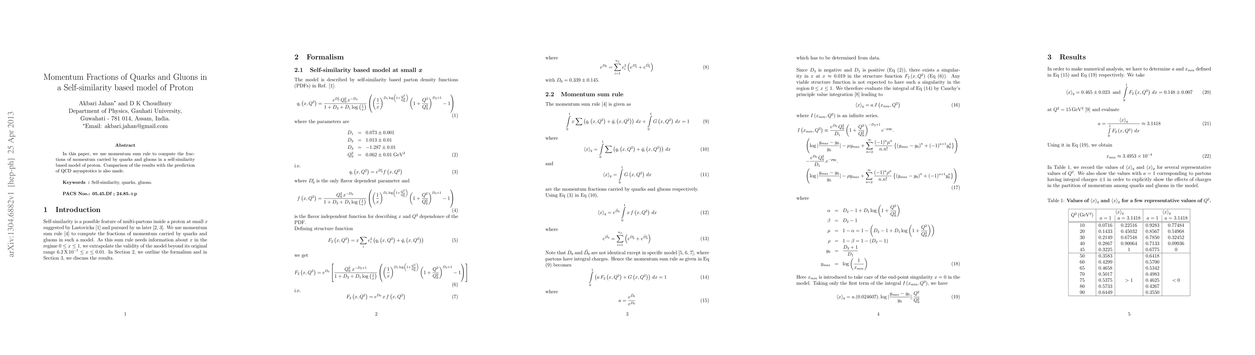 Researchers used a self-similarity model to calculate quark and gluon momentum fractions in a proton, comparing their results with the predictions of quantum chromodynamics (QCD) asymptotics.