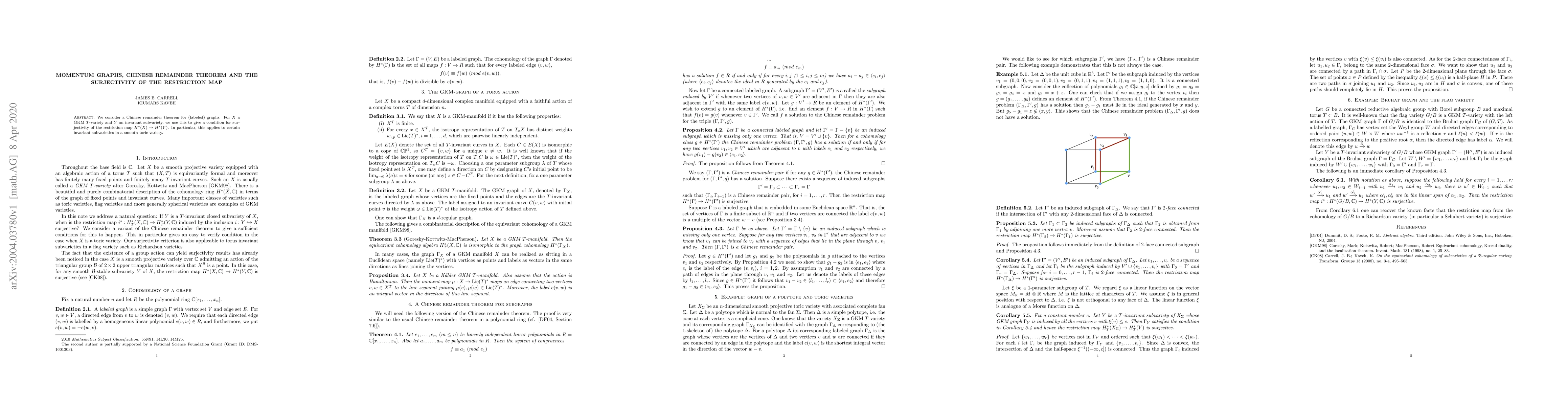 We consider a Chinese remainder theorem for (labeled) graphs. For $X$ a GKM $T$-variety and $Y$ an invariant subvariety, we use this to give a condition for surjectivity of the restriction map $H^*(X) \to H^*(Y)$. In particular, this applies to certain invariant subvarieties in a smooth toric variety.