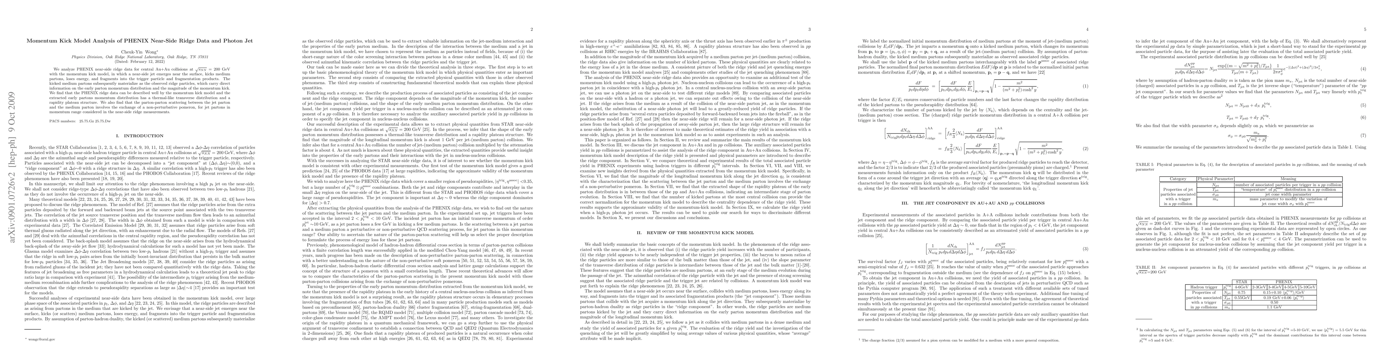 The PHENIX near-side ridge data in central Au+Au collisions at √s_NN=200 GeV is well described by the momentum kick model, revealing a thermal-like transverse distribution and a rapidity plateau structure for early parton momentum. This model also suggests non-perturbative pomeron exchange in parton-parton scattering.