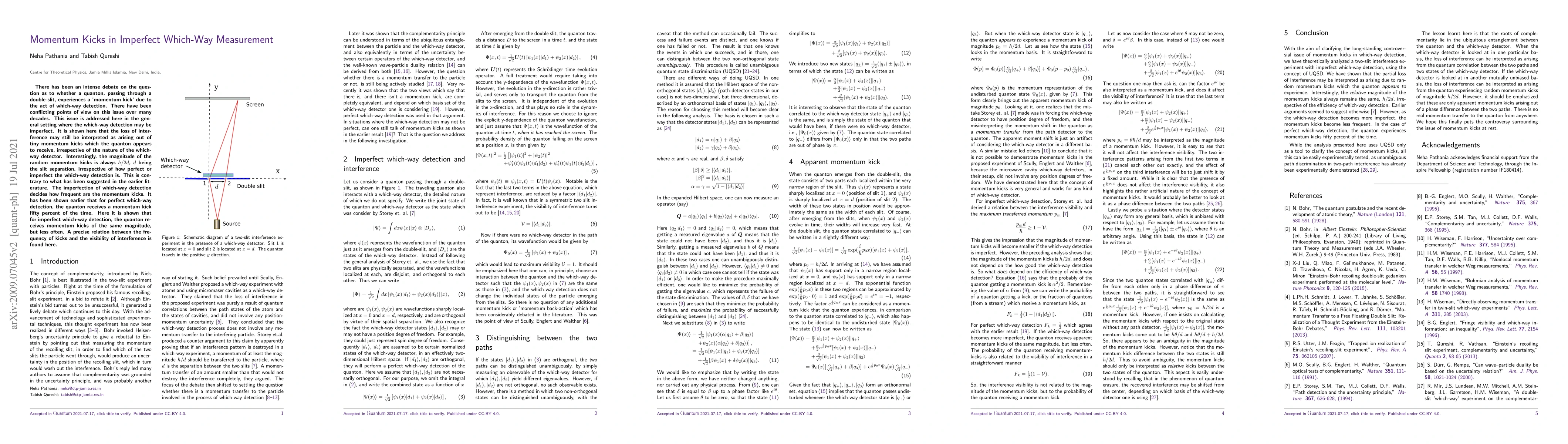 There has been an intense debate on the question as to whether a quanton, passing through a double-slit, experiences a 'momentum kick' due to the act of which-way detection. There have been conflicting points of view on this issue over many decades. This issue is addressed here in the general setting where the which-way detection may be imperfect. It is shown here that the loss of interference may still be interpreted as arising out of tiny momentum kicks which the quanton appears to receive, irrespective of the nature of the which-way detector. Interestingly, the magnitude of the random momentum kicks is always h/2d, d being the slit separation, irrespective of how perfect or imperfect the which-way detection is. This is contrary to what has been suggested in the earlier literature. The imperfection of which-way detection decides how frequent are the momentum kicks. It has been shown earlier that for perfect which-way detection, the quanton receives a momentum kick fifty percent of the time. Here it is shown that for imperfect which-way detection, the quanton receives momentum kicks of the same magnitude, but less often. A precise relation between the frequency of kicks and the visibility of interference is found here.