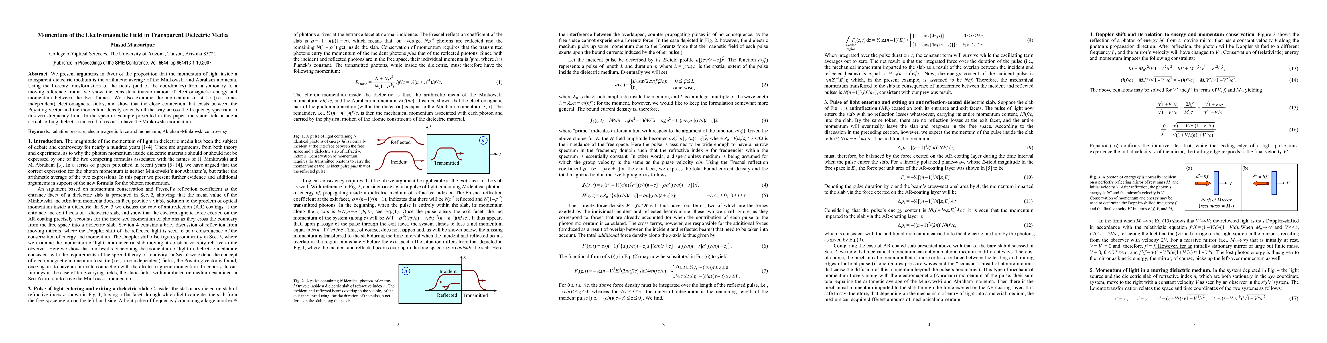 The study proposes that light momentum in transparent dielectric media is the average of Minkowski and Abraham momenta, with consistent transformation between reference frames.