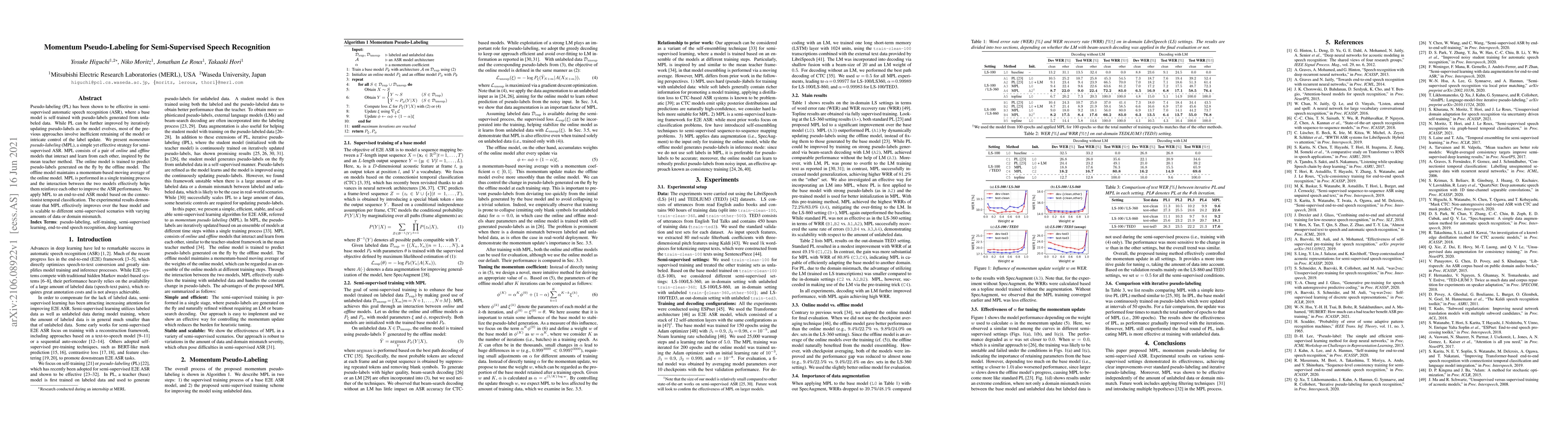 The paper proposes momentum pseudo-labeling (MPL) for semi-supervised automatic speech recognition, utilizing an online model trained on pseudo-labels generated by an offline model. This interaction improves ASR performance and scales effectively across different semi-supervised scenarios.