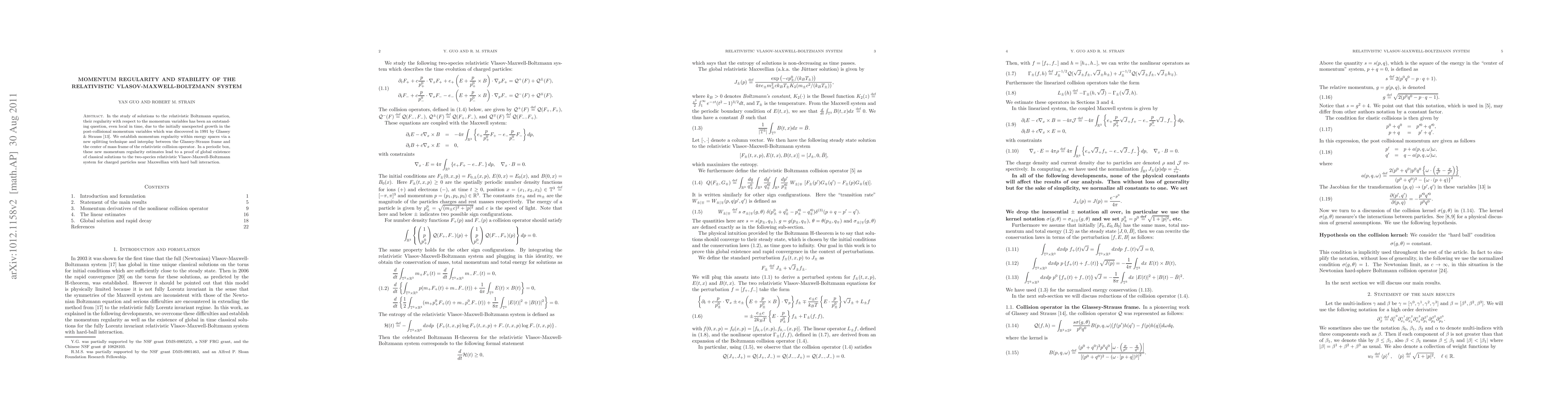 Researchers establish momentum regularity for solutions to the relativistic Vlasov-Maxwell-Boltzmann system, leading to a proof of global existence of classical solutions under certain conditions.