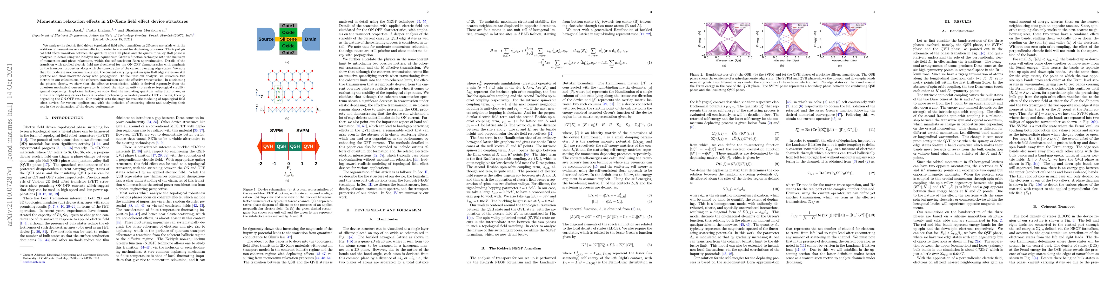 Researchers analyze how electric fields affect 2D-xene materials, accounting for momentum relaxation to study topological field effect transitions, finding that moderate relaxation preserves quantum spin Hall edge states but degrades the ON-OFF ratio of insulating phases.