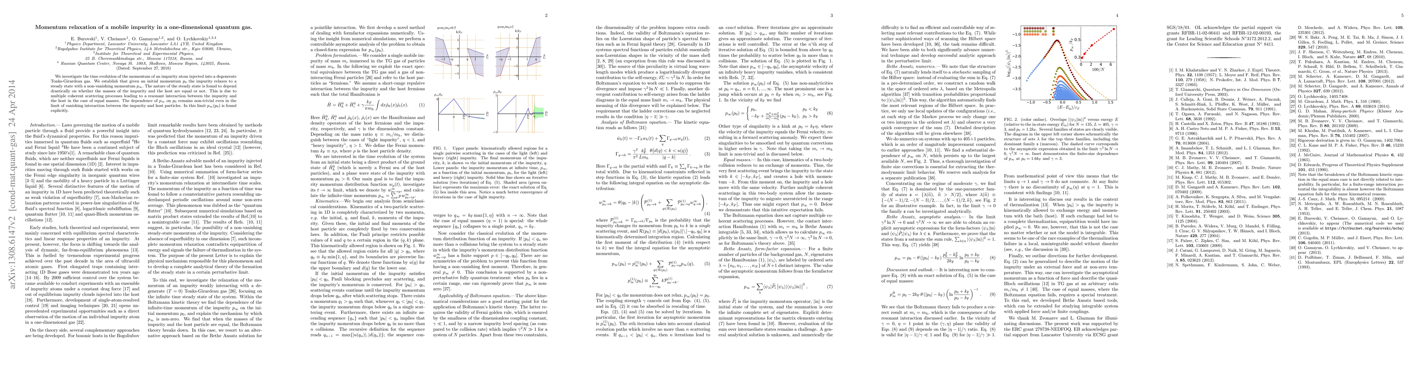 We investigate the time evolution of the momentum of an impurity atom injected into a degenerate Tonks-Girardeau gas. We establish that given an initial momentum $p_0$ the impurity relaxes to a steady state with a non-vanishing momentum $p_\infty.$ The nature of the steady state is found to depend drastically on whether the masses of the impurity and the host are equal or not. This is due to multiple coherent scattering processes leading to a resonant interaction between the impurity and the host in the case of equal masses. The dependence of $p_\infty$ on $p_0$ remains non-trivial even in the limit of vanishing interaction between the impurity and host particles. In this limit $p_\infty(p_0)$ is found explicitly.