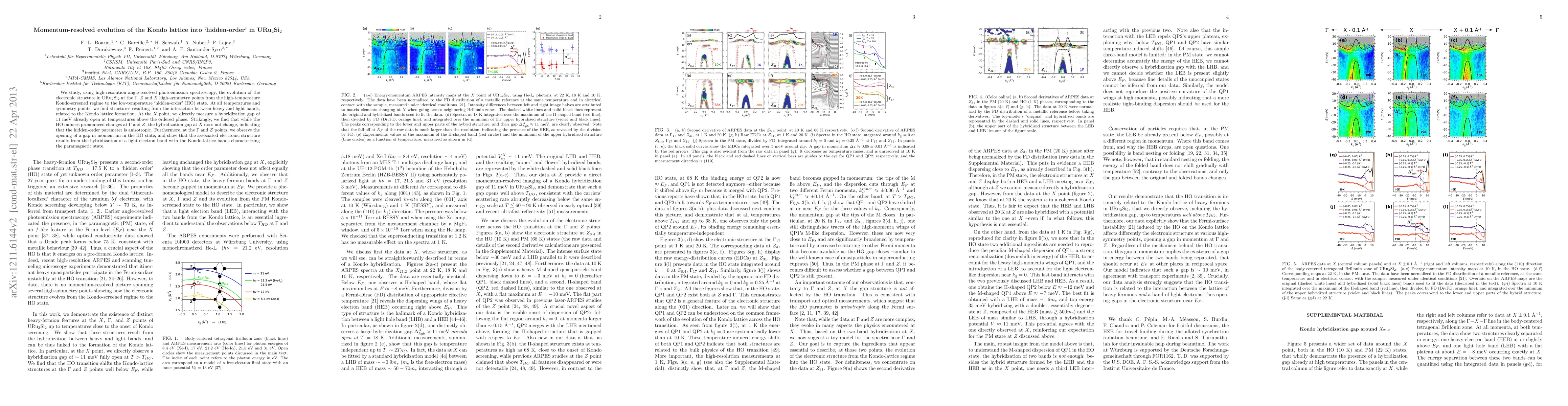 This study uses high-resolution angle-resolved photoemission spectroscopy to track the electronic structure changes in URu2Si2 from the Kondo-screened regime to the hidden-order state, revealing an anisotropic hidden-order parameter and a hybridization gap at the X point that remains unaffected by the transition.