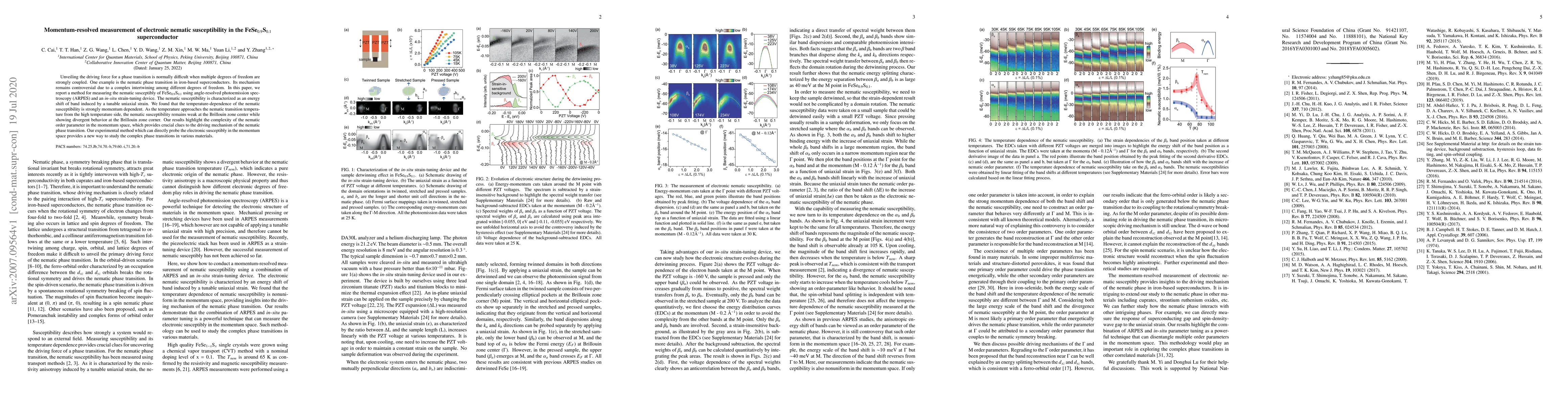 This paper reports a momentum-resolved measurement of electronic nematic susceptibility in FeSe$_{0.9}$S$_{0.1}$ using ARPES and an $in$-$situ$ strain-tuning device, revealing strong momentum dependence near the nematic transition temperature. The findings highlight the complexity of the nematic order parameter in momentum space and offer a new method to study complex phase transitions in materials.