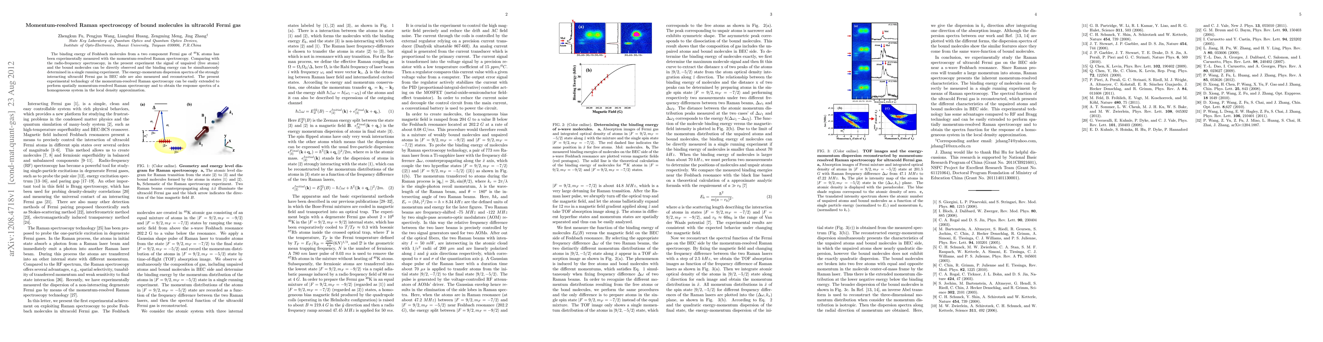 This research employs momentum-resolved Raman spectroscopy to measure the binding energy of Feshbach molecules in an ultracold Fermi gas of $^{40}$K atoms, distinguishing bound molecules and unpaired atoms directly. The method allows simultaneous determination of binding energy and provides energy-momentum dispersion spectra, enabling future spatially resolved studies.