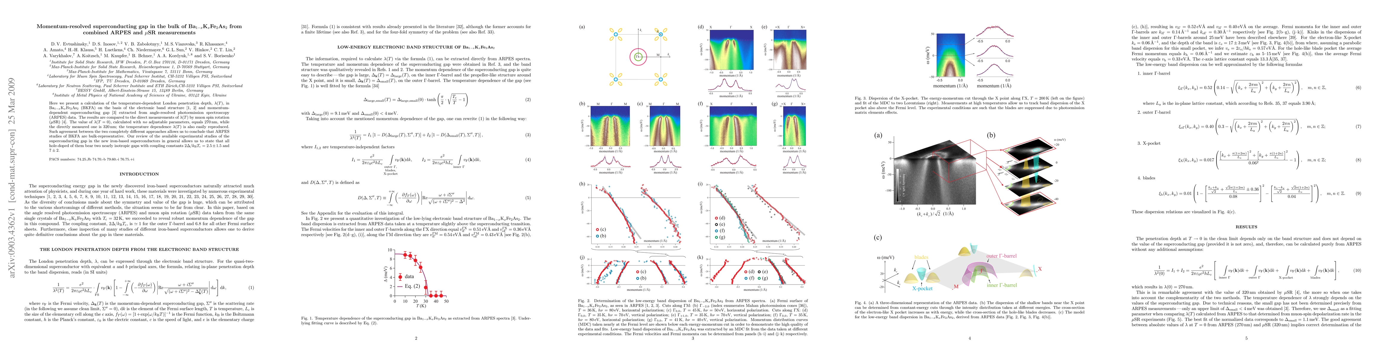 The paper presents a calculation of the temperature-dependent London penetration depth ($lambda(T)$) in Ba$_{1-x}$K$_{x}$Fe$_2$As$_2$, matching ARPES and $mu$SR measurements. The calculated $lambda(T=0)$ is 270 nm, close to the directly measured 320 nm, confirming ARPES bulk representation. The study concludes that hole-doped iron-based superconductors generally have two nearly isotropic gaps with specific coupling constants.