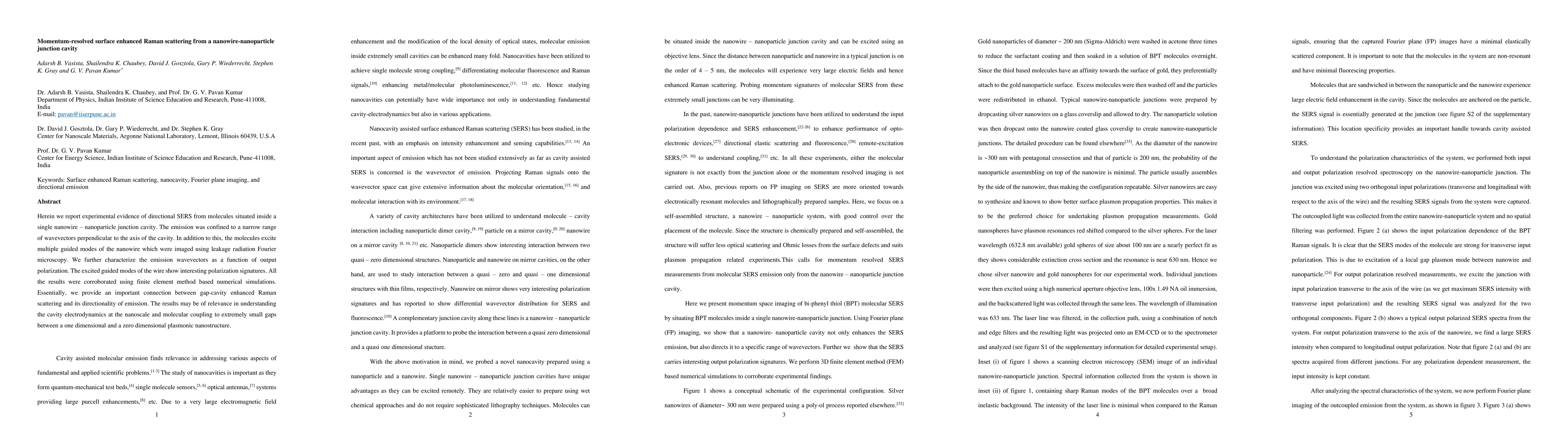 Herein we report experimental evidence of directional SERS from molecules situated inside a single nanowire-nanoparticle junction cavity. The emission was confined to a narrow range of wavevectors perpendicular to the axis of the cavity. In addition to this, the molecules excite multiple guided modes of the nanowire which were imaged using leakage radiation Fourier microscopy. We further characterize the emission wavevectors as a function of output polarization. The excited guided modes of the wire show interesting polarization signatures. All the results were corroborated using finite element method based numerical simulations. Essentially, we provide an important connection between gap-cavity enhanced Raman scattering and its directionality of emission. The results may be of relevance in understanding the cavity electrodynamics at the nanoscale and molecular coupling to extremely small gaps between a one dimensional and a zero-dimensional plasmonic nanostructure.