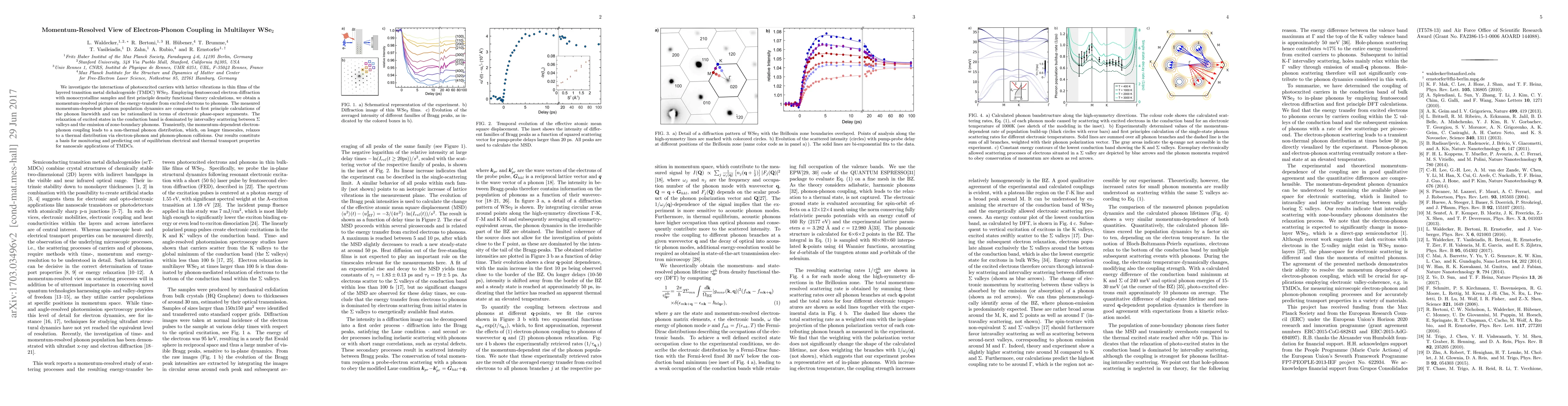 We investigate the interactions of photoexcited carriers with lattice vibrations in thin films of the layered transition metal dichalcogenide (TMDC) WSe$_2$. Employing femtosecond electron diffraction with monocrystalline samples and first principle density functional theory calculations, we obtain a momentum-resolved picture of the energy-transfer from excited electrons to phonons. The measured momentum-dependent phonon population dynamics are compared to first principle calculations of the phonon linewidth and can be rationalized in terms of electronic phase-space arguments. The relaxation of excited states in the conduction band is dominated by intervalley scattering between $\Sigma$ valleys and the emission of zone-boundary phonons. Transiently, the momentum-dependent electron-phonon coupling leads to a non-thermal phonon distribution, which, on longer timescales, relaxes to a thermal distribution via electron-phonon and phonon-phonon collisions. Our results constitute a basis for monitoring and predicting out of equilibrium electrical and thermal transport properties for nanoscale applications of TMDCs.
