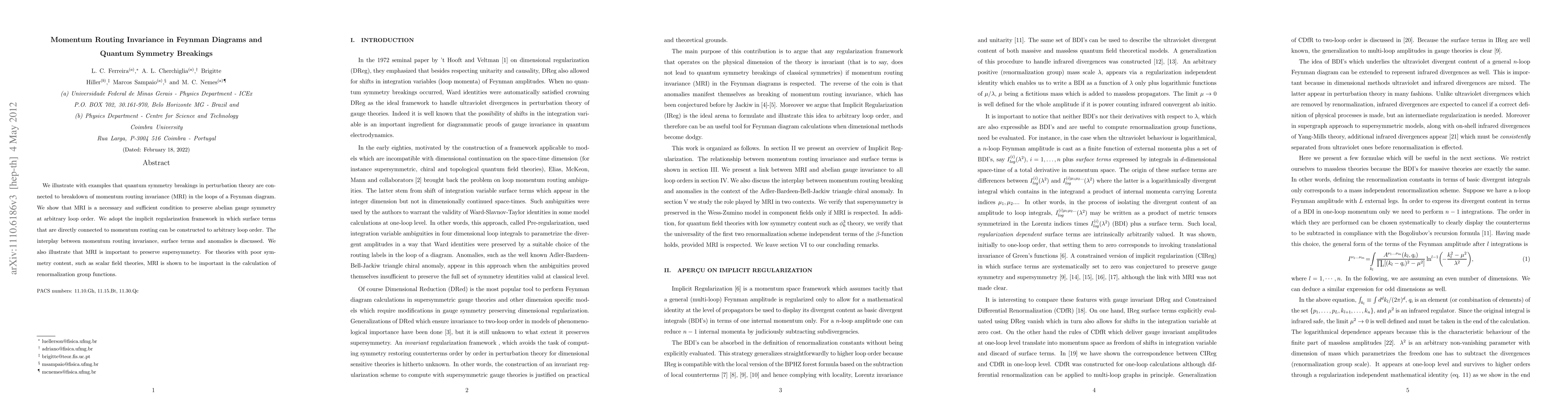 We illustrate with examples that quantum symmetry breakings in perturbation theory are connected to breakdown of momentum routing invariance (MRI) in the loops of a Feynman diagram. We show that MRI is a necessary and sufficient condition to preserve abelian gauge symmetry at arbitrary loop order. We adopt the implicit regularization framework in which surface terms that are directly connected to momentum routing can be constructed to arbitrary loop order. The interplay between momentum routing invariance, surface terms and anomalies is discussed. We also illustrate that MRI is important to preserve supersymmetry. For theories with poor symmetry content, such as scalar field theories, MRI is shown to be important in the calculation of renormalization group functions.