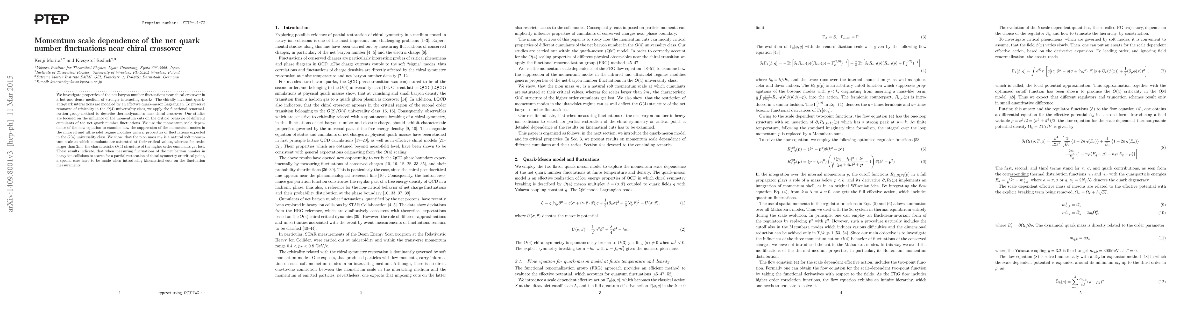 This paper examines the impact of momentum scale dependence on net quark number fluctuations near the chiral crossover using an effective quark-meson Lagrangian and functional renormalization group. It finds that the pion mass $m_\pi$ is a critical scale for cumulant saturation, and higher scales lose the O(4) universality class structure, highlighting the need for careful kinematical cuts in heavy ion collision experiments.