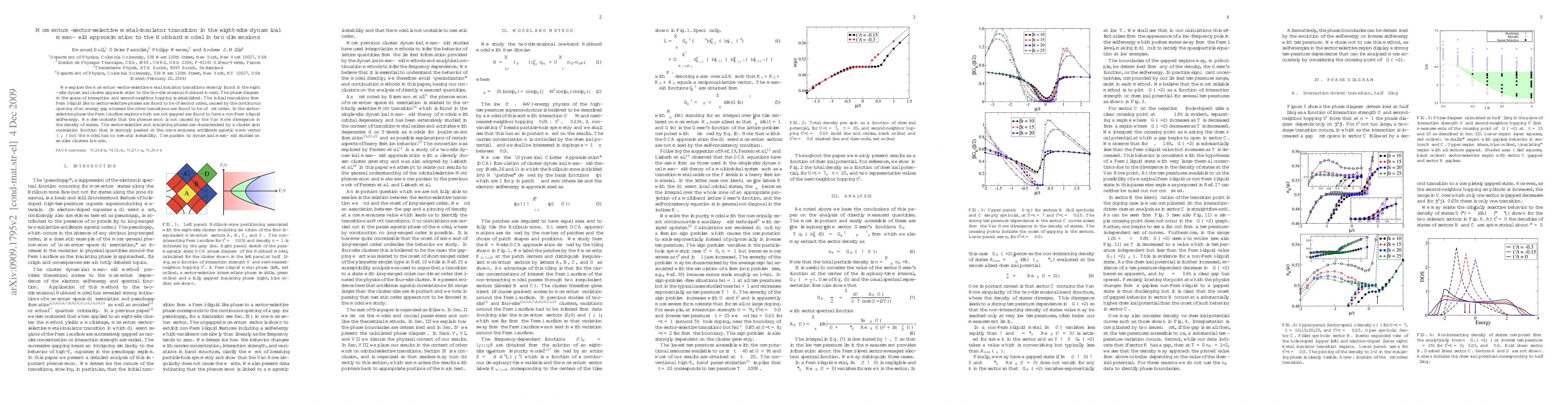 We explore the momentum-sector-selective metal insulator transitions recently found in the eight - site dynamical cluster approximation to the two-dimensional Hubbard model. The phase diagram in the space of interaction and second-neighbor hopping is established. The initial transitions from Fermi-liquid like to sector-selective phases are found to be of second order, caused by the continuous opening of an energy gap whereas the other transitions are found to be of first order. In the sector-selective phase the Fermi surface regions which are not gapped are found to have a non-Fermi-liquid self-energy. We demonstrate that the phenomenon is not caused by the Van Hove divergence in the density of states. The sector-selective and insulating phases are characterized by a cluster spin correlation function that is strongly peaked at the commensurate antiferromagnetic wave vector $(\pi,\pi)$ but the model has no nematic instability. Comparison to dynamical mean-field studies on smaller clusters is made.
