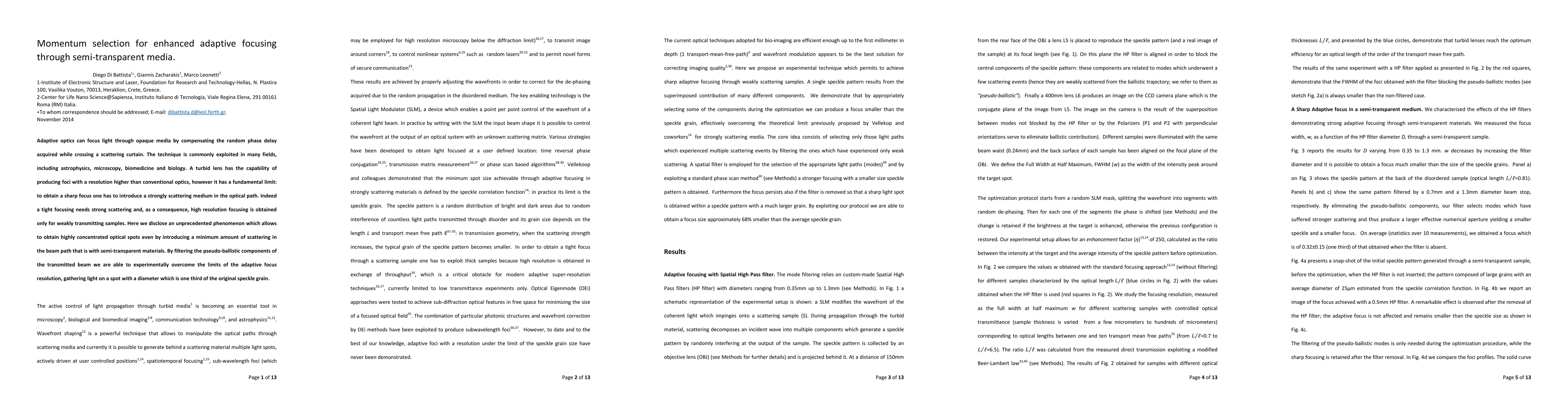 Adaptive optics can focus light through opaque media by compensating the random phase delay acquired while crossing a scattering curtain. The technique is commonly exploited in many fields, including astrophysics, microscopy, biomedicine and biology. A turbid lens has the capability of producing foci with a resolution higher than conventional optics, however it has a fundamental limit: to obtain a sharp focus one has to introduce a strongly scattering medium in the optical path. Indeed a tight focusing needs strong scattering and, as a consequence, high resolution focusing is obtained only for weakly transmitting samples. Here we disclose an unprecedented phenomenon which allows to obtain highly concentrated optical spots even by introducing a minimum amount of scattering in the beam path that is with semi-transparent materials. By filtering the pseudo-ballistic components of the transmitted beam we are able to experimentally overcome the limits of the adaptive focus resolution, gathering light on a spot with a diameter which is one third of the original speckle grain.