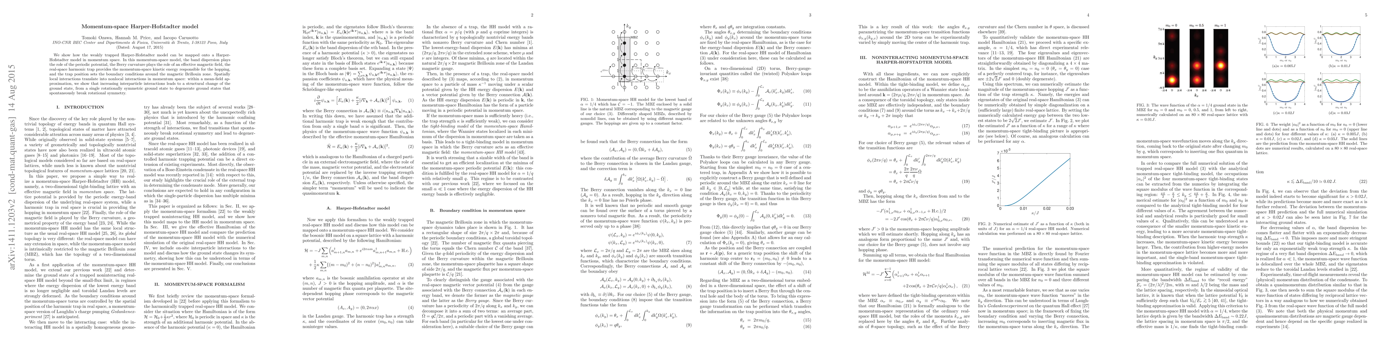 This paper demonstrates the transformation of the weakly trapped Harper-Hofstadter model into a momentum-space equivalent, revealing how spatial interactions become nonlocal in momentum space. It shows that increased interparticle interactions lead to a transition from a symmetric ground state to degenerate, rotationally asymmetric states.