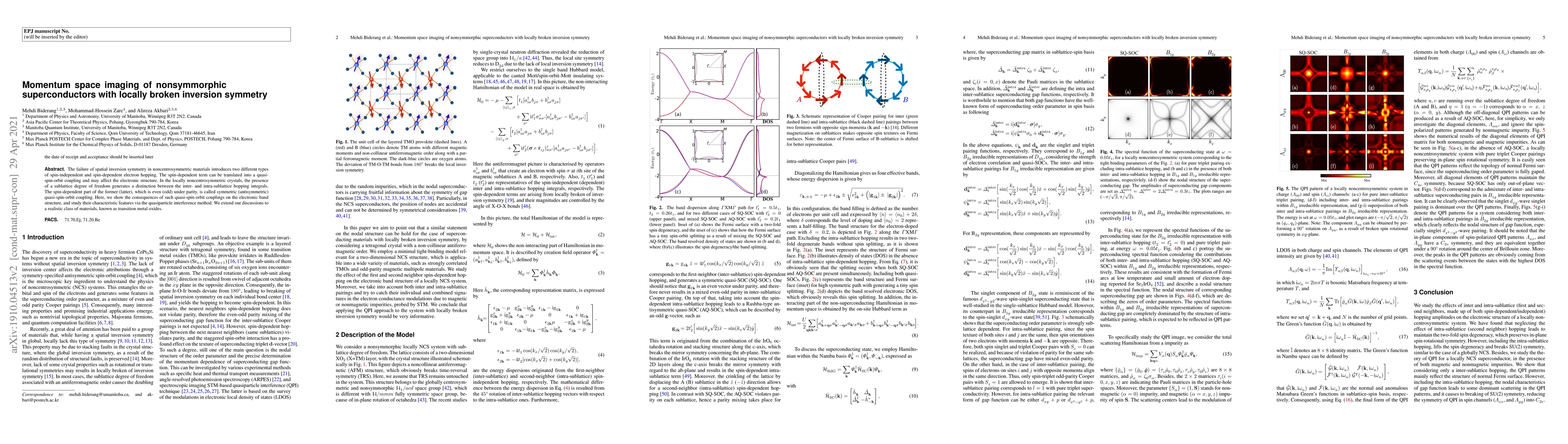 The failure of spatial inversion symmetry in noncentrosymmetric materials introduces two different types of spin-independent and spin-dependent electron hopping. The spin-dependent term can be translated into a quasi-spin-orbit coupling and may affect the electronic structure. In the locally noncentrosymmetric crystals, the presence of a sublattice degree of freedom generates a distinction between the inter- and intra-sublattice hopping integrals. The spin-dependent part of the former (latter), which is even (odd) under parity, is called symmetric (antisymmetric) quasi-spin-orbit coupling. Here, we show the consequences of such quasi-spin-orbit couplings on the electronic band structure and study their characteristic features via the quasiparticle interference method. We extend our discussions to a realistic class of materials, known as transition metal oxides.