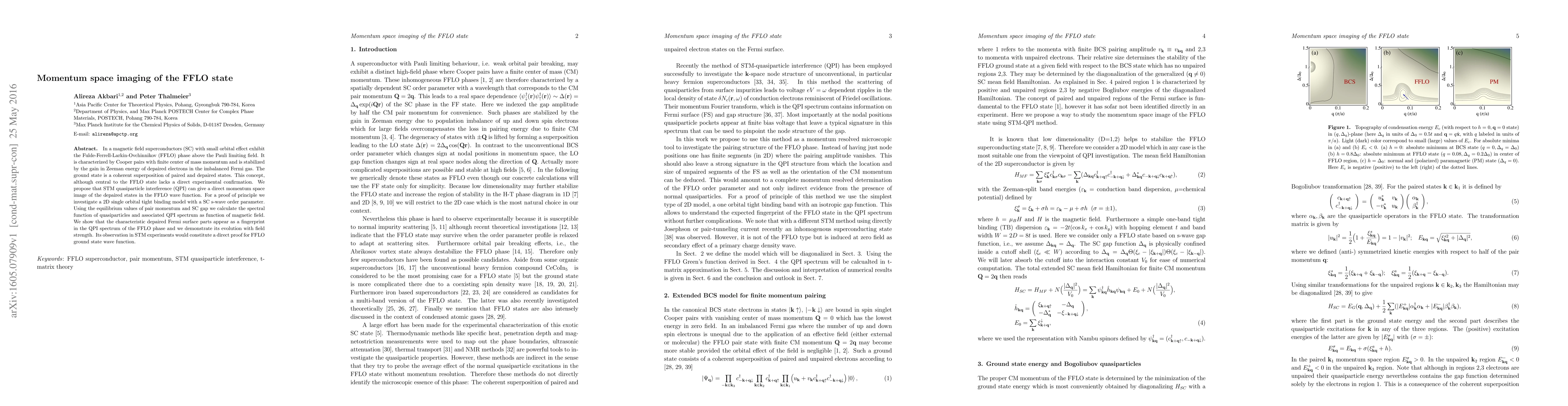 This research proposes using Scanning Tunneling Microscopy (STM) quasiparticle interference (QPI) to directly image the depaired states in the Fulde-Ferrell-Larkin-Ovchinnikov (FFLO) superconducting phase, offering a proof of concept via a 2D single orbital tight binding model. The findings suggest that characteristic depaired Fermi surface parts would appear as a unique 'fingerprint' in the QPI spectrum, which could provide direct experimental confirmation of the FFLO ground state wave function.