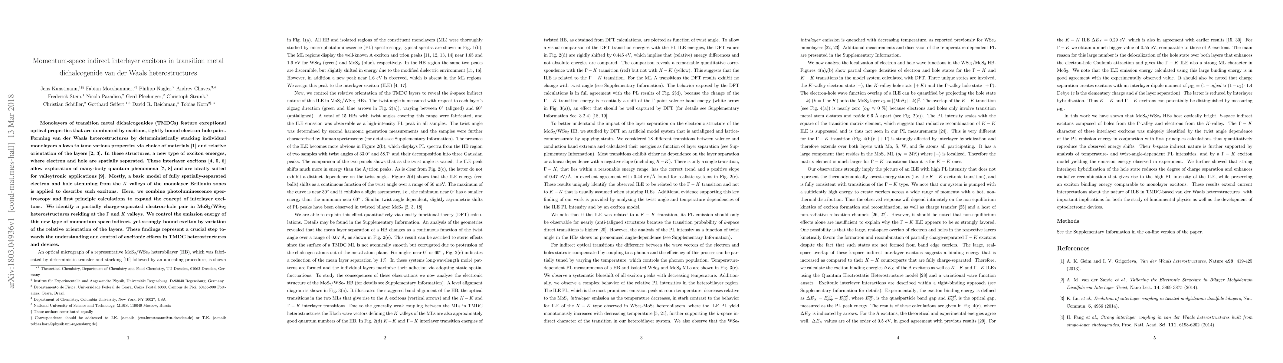 Monolayers of transition metal dichalcogenides (TMDCs) feature exceptional optical properties that are dominated by excitons, tightly bound electron-hole pairs. Forming van der Waals heterostructures by deterministically stacking individual monolayers allows to tune various properties via choice of materials and relative orientation of the layers. In these structures, a new type of exciton emerges, where electron and hole are spatially separated. These interlayer excitons allow exploration of many-body quantum phenomena and are ideally suited for valleytronic applications. Mostly, a basic model of fully spatially-separated electron and hole stemming from the $K$ valleys of the monolayer Brillouin zones is applied to describe such excitons. Here, we combine photoluminescence spectroscopy and first principle calculations to expand the concept of interlayer excitons. We identify a partially charge-separated electron-hole pair in MoS$_2$/WSe$_2$ heterostructures residing at the $\Gamma$ and $K$ valleys. We control the emission energy of this new type of momentum-space indirect, yet strongly-bound exciton by variation of the relative orientation of the layers. These findings represent a crucial step towards the understanding and control of excitonic effects in TMDC heterostructures and devices.