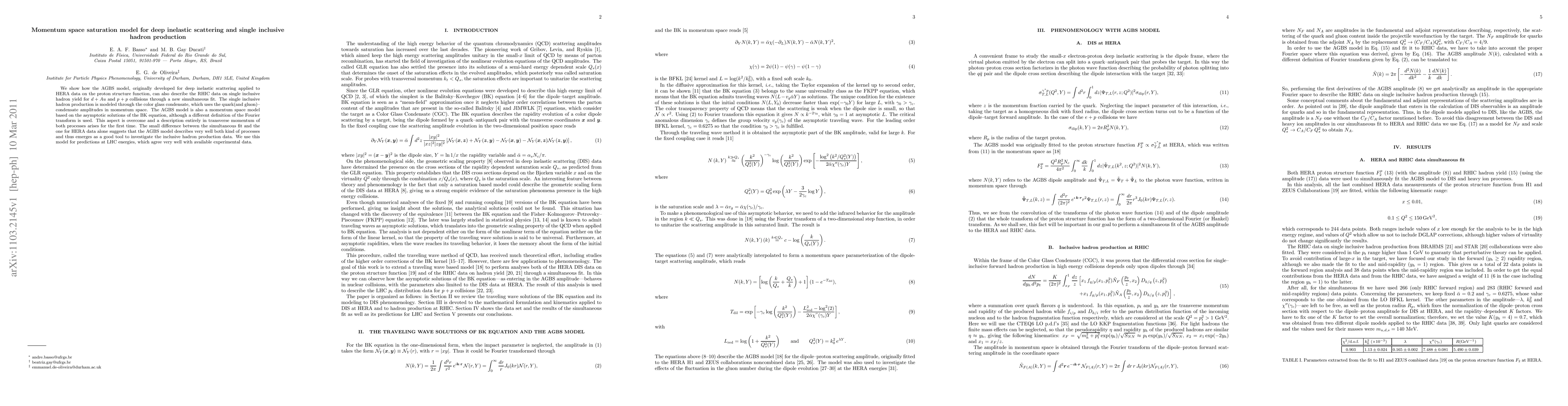 The AGBS model, originally for deep inelastic scattering, is shown to describe both HERA and RHIC data on single inclusive hadron production via a new simultaneous fit, using the color glass condensate in momentum space. The model's success in predicting LHC data suggests its efficacy in analyzing inclusive hadron production.