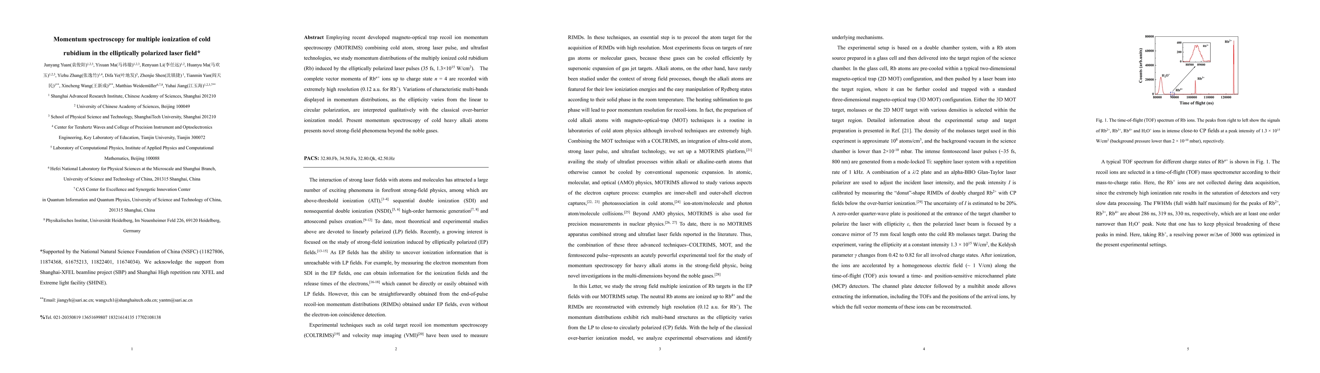 This paper employs magneto-optical trap recoil ion momentum spectroscopy (MOTRIMS) to study the momentum distributions of multiply ionized cold rubidium atoms under elliptically polarized laser pulses. The research reveals novel strong-field phenomena in heavy alkali atoms, with high-resolution measurements of Rb$^+$ ions up to charge state n = 4, interpreted through a classical over-barrier ionization model.