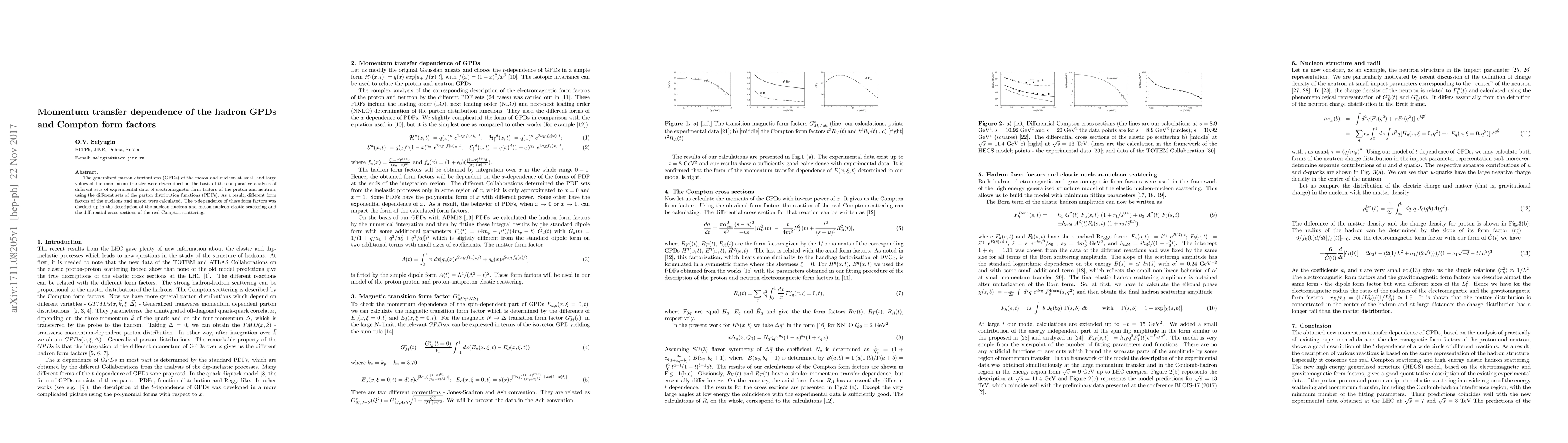 This paper investigates the generalized parton distributions (GPDs) of mesons and nucleons across varying momentum transfers, utilizing experimental data and parton distribution functions to calculate nucleon and meson form factors. The study assesses the t-dependence of these form factors in nucleon-nucleon and meson-nucleon scattering, as well as in real Compton scattering differential cross sections.