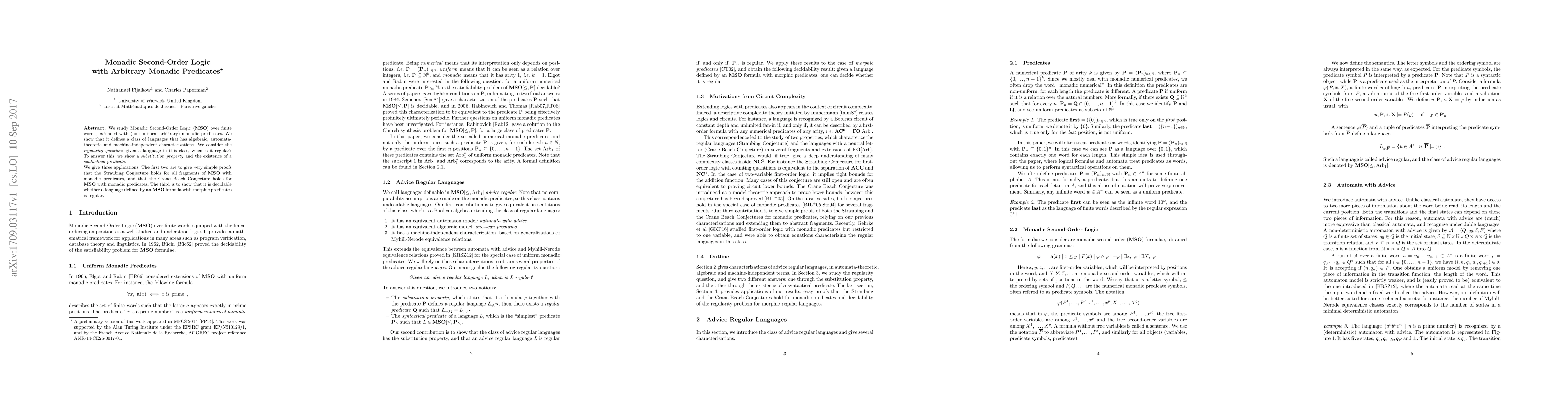 This paper extends Monadic Second-Order Logic (MSO) with non-uniform monadic predicates, demonstrating its equivalence with algebraic, automata-theoretic, and machine-independent properties. It also addresses the regularity of languages defined by such extended MSO, proving a substitution property and introducing a syntactical predicate.