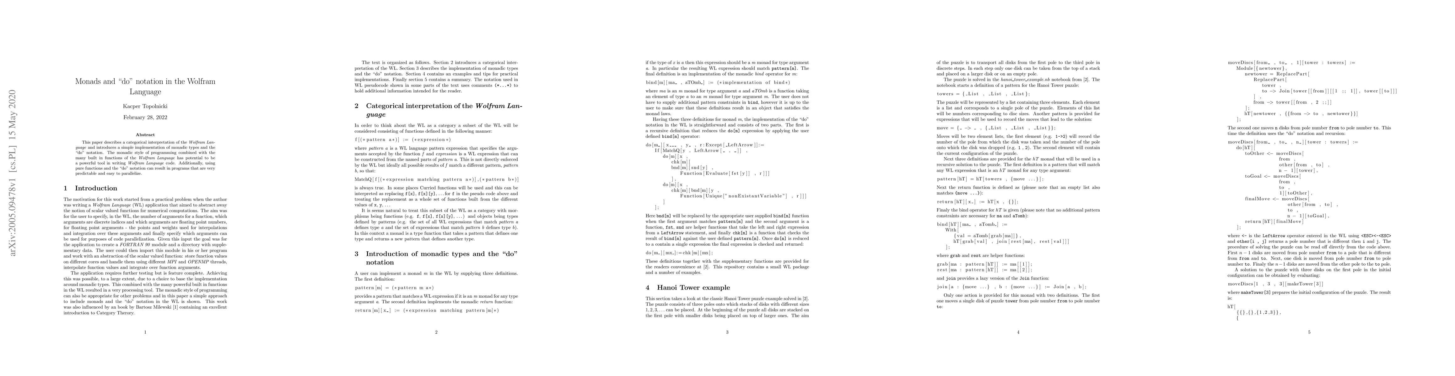 This paper introduces monadic types and "do" notation in the Wolfram Language, providing a categorical interpretation and demonstrating their potential to enhance code predictability and parallelization through the use of pure functions.