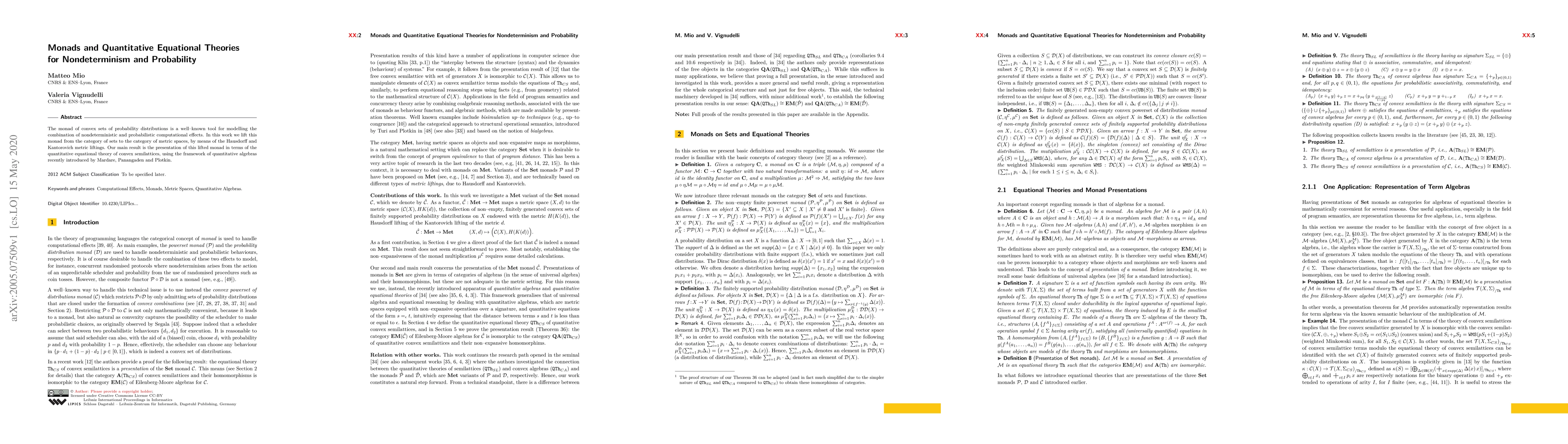 This paper extends the monad for nondeterministic and probabilistic effects from sets to metric spaces using Hausdorff and Kantorovich metrics. It presents this lifted monad through the quantitative equational theory of convex semilattices, utilizing the framework of quantitative algebras.