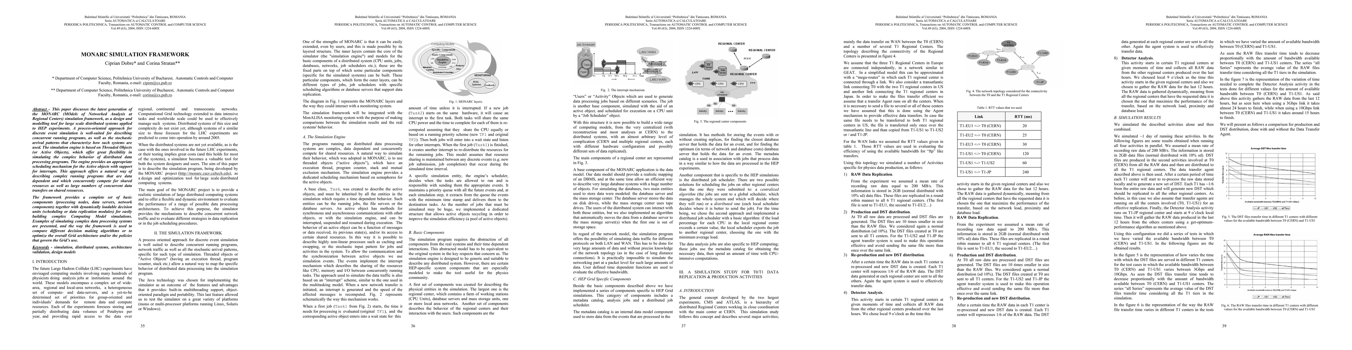 This paper discusses the latest generation of the MONARC (MOdels of Networked Analysis at Regional Centers) simulation framework, as a design and modelling tool for large scale distributed systems applied to HEP experiments. A process-oriented approach for discrete event simulation is well-suited for describing concurrent running programs, as well as the stochastic arrival patterns that characterize how such systems are used. The simulation engine is based on Threaded Objects (or Active Objects), which offer great flexibility in simulating the complex behavior of distributed data processing programs. The engine provides an appropriate scheduling mechanism for the Active objects with support for interrupts. This approach offers a natural way of describing complex running programs that are data dependent and which concurrently compete for shared resources as well as large numbers of concurrent data transfers on shared resources. The framework provides a complete set of basic components (processing nodes, data servers, network components) together with dynamically loadable decision units (scheduling or data replication modules) for easily building complex Computing Model simulations. Examples of simulating complex data processing systems are presented, and the way the framework is used to compare different decision making algorithms or to optimize the overall Grid architecture and/or the policies that govern the Grid's use.