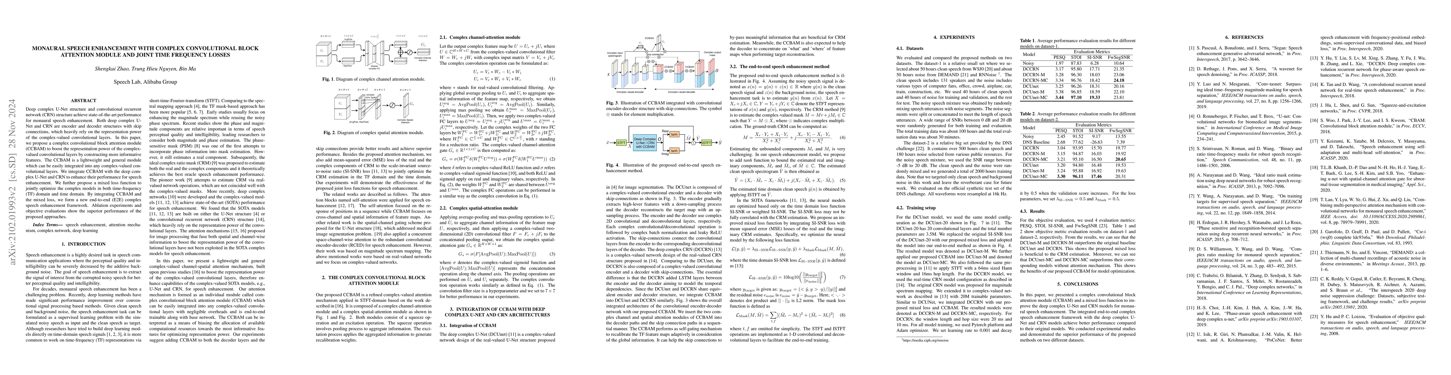 The novelty of this work lies in the design of the CCBAM, a lightweight and general attention module specifically tailored for complex-valued convolutional layers, and the mixed loss function that enhances the optimization of complex models for speech enhancement tasks.